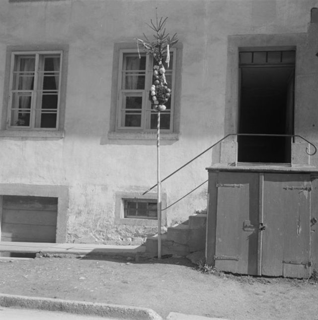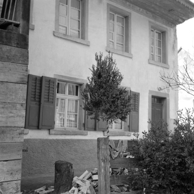 50. Aufpflanzen eines Bäumchens auf den First beim Hausbau