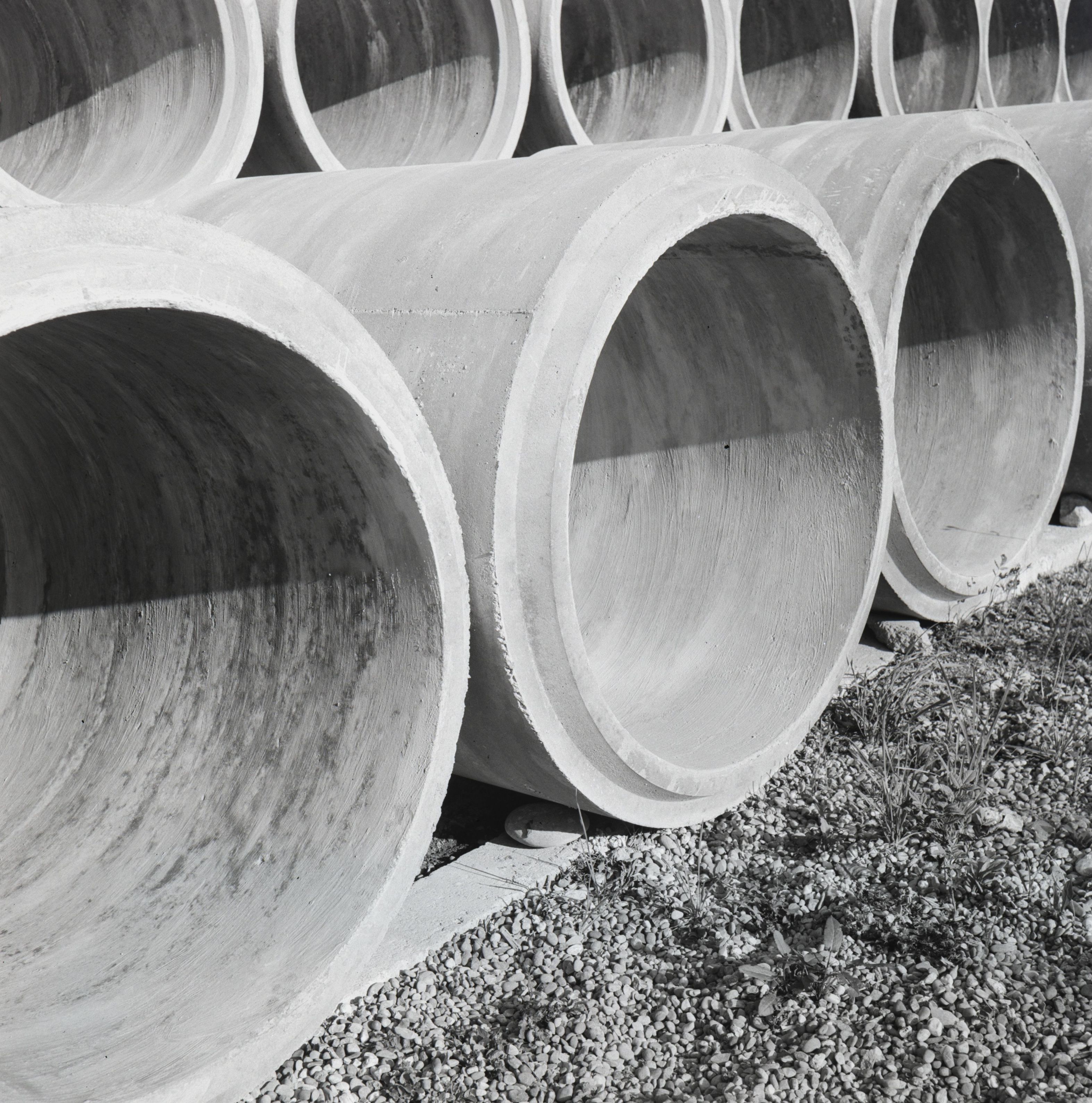 [Gestapelte Zementrohre]