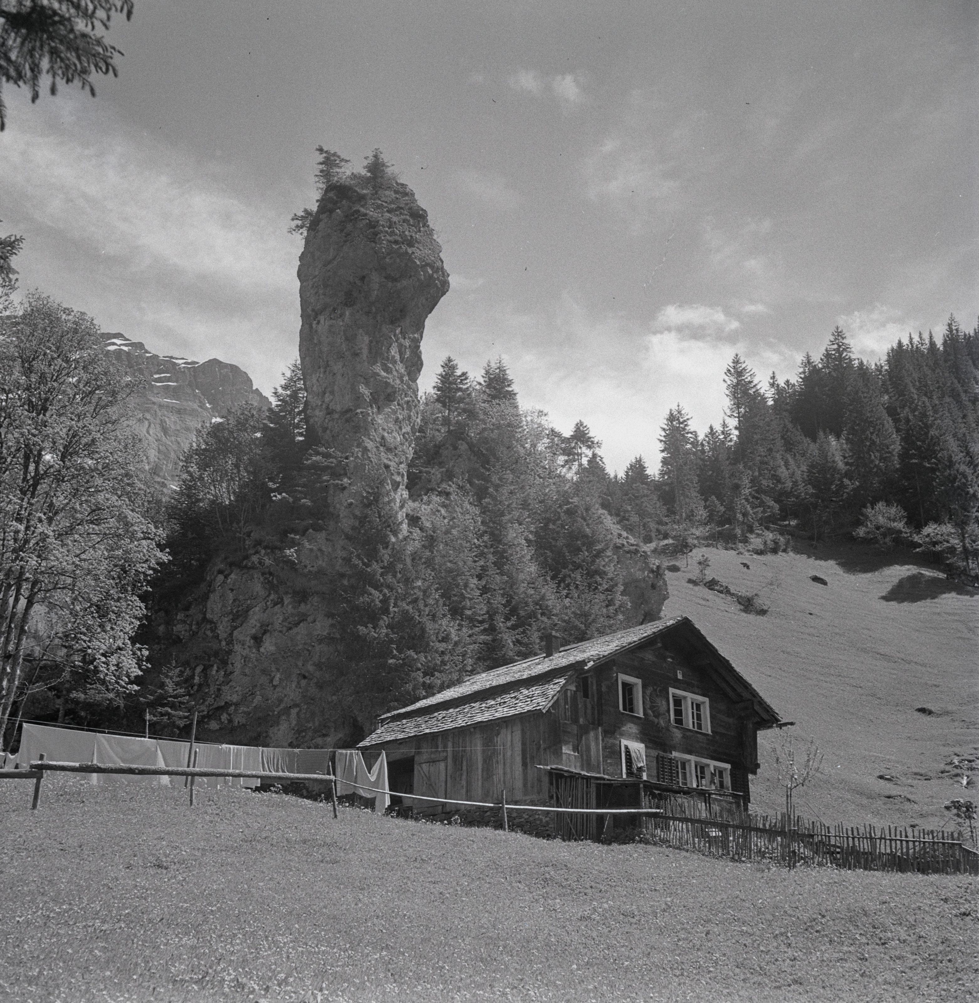[Felsnadel und Alphütte]
