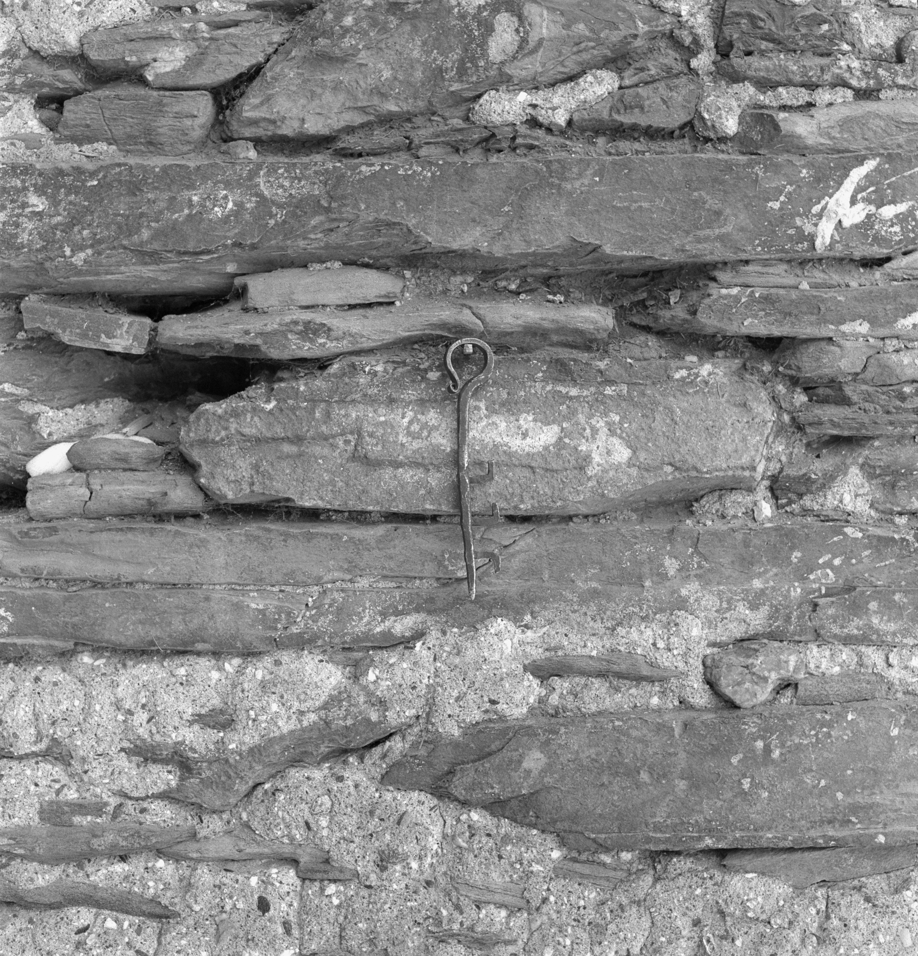 [Steinmauer mit Eisenhaken]