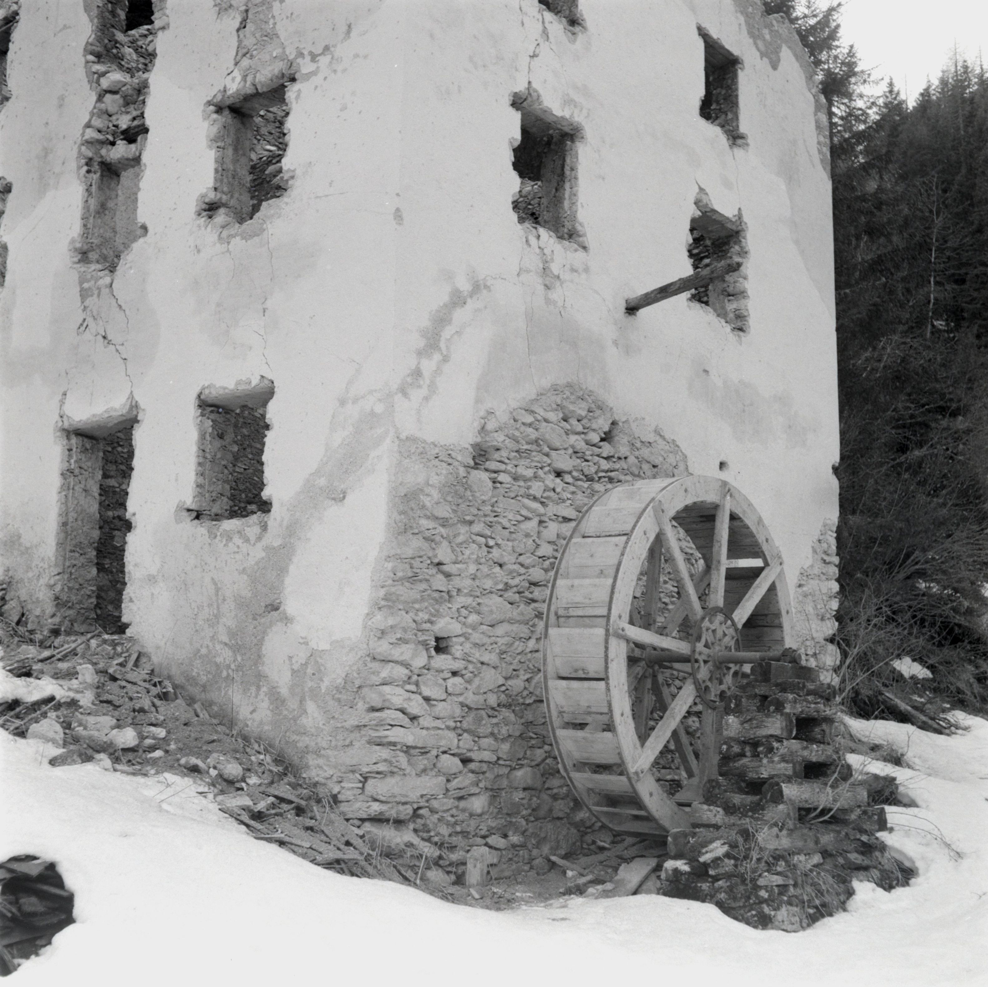 [Wasserrad an einem Steinhaus]