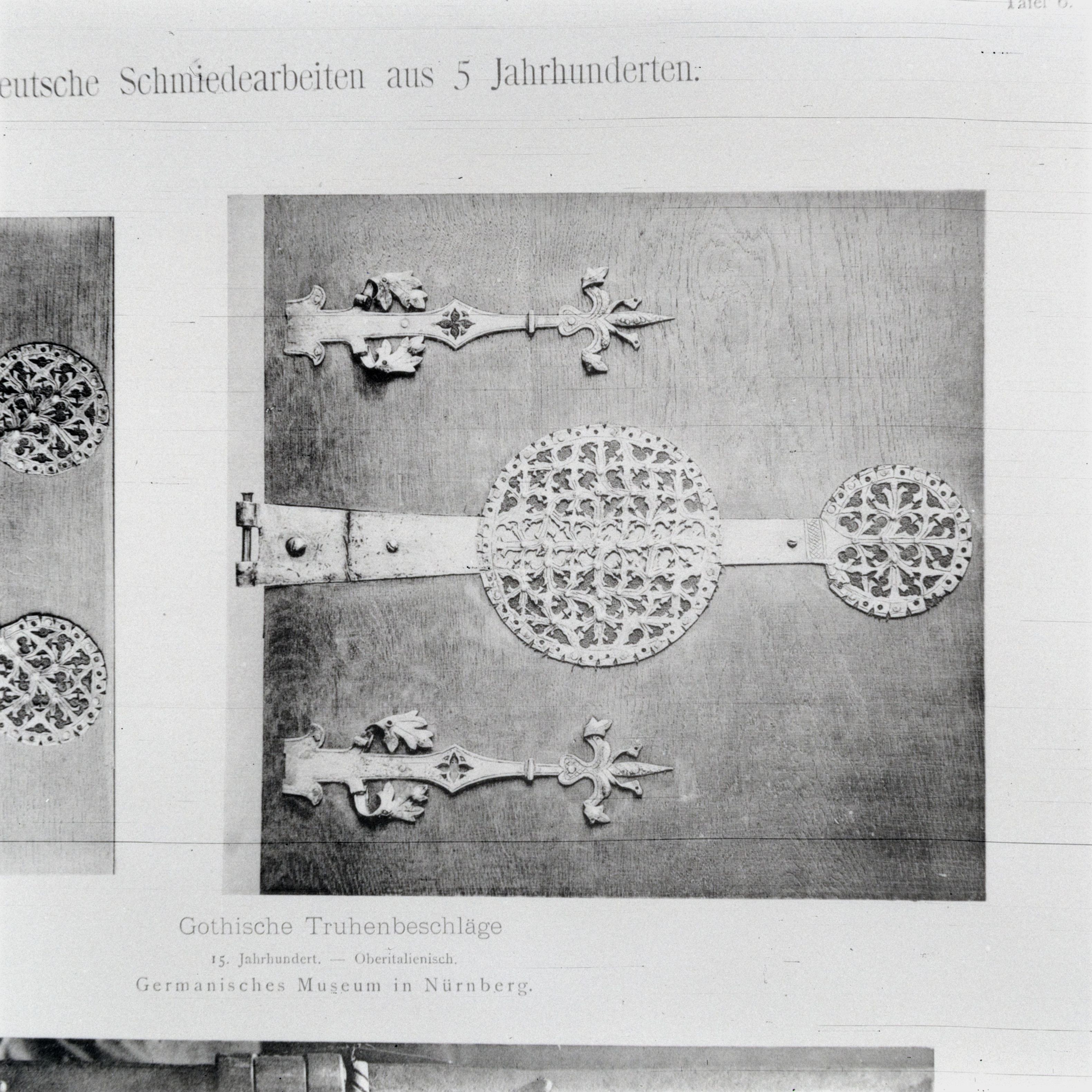 [Reproduktion eines Druckes mit dem Titel "Deutsche Schmiedearbeiten aus fünf Jahrhunderten"]