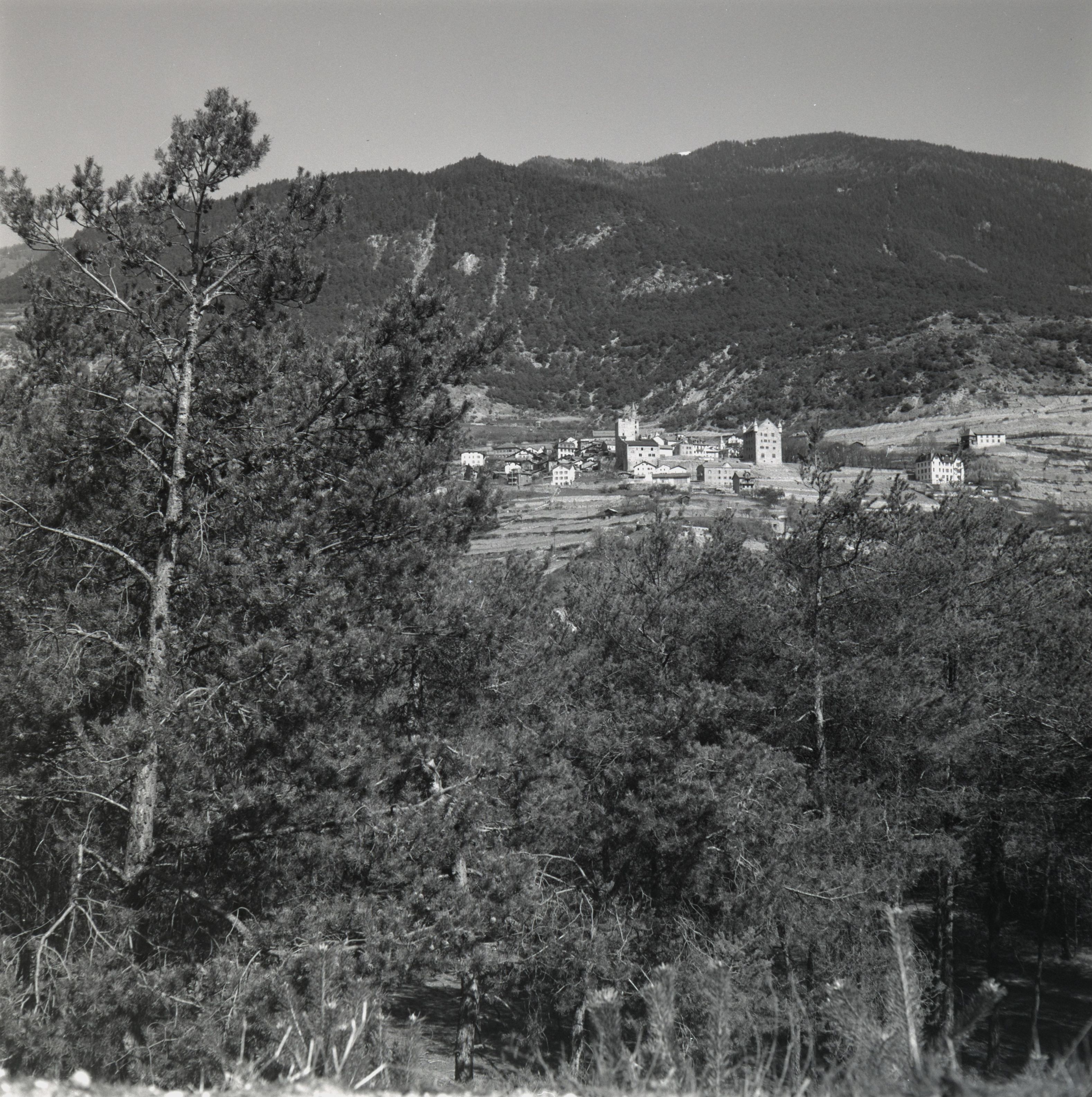 Beim Bild befindet sich folgende Notiz: NL 42 - 100 Pfinwald bei Sierre WallisMärz 1948