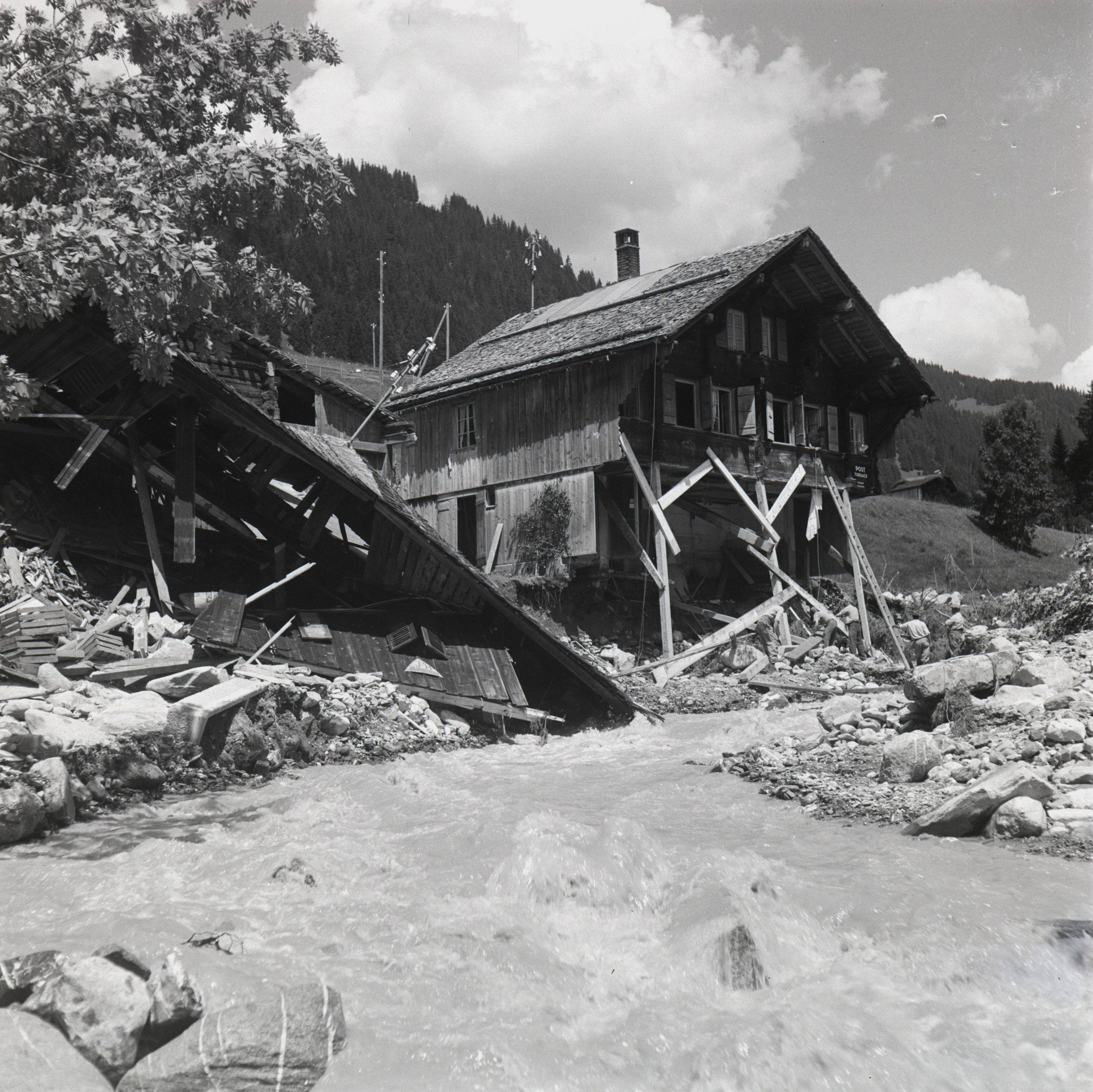 Beim Bild befindet sich folgende Notiz: NT 1 - 100Wassernot im Turbachtal Aufgenommen: Juli 21. 1948