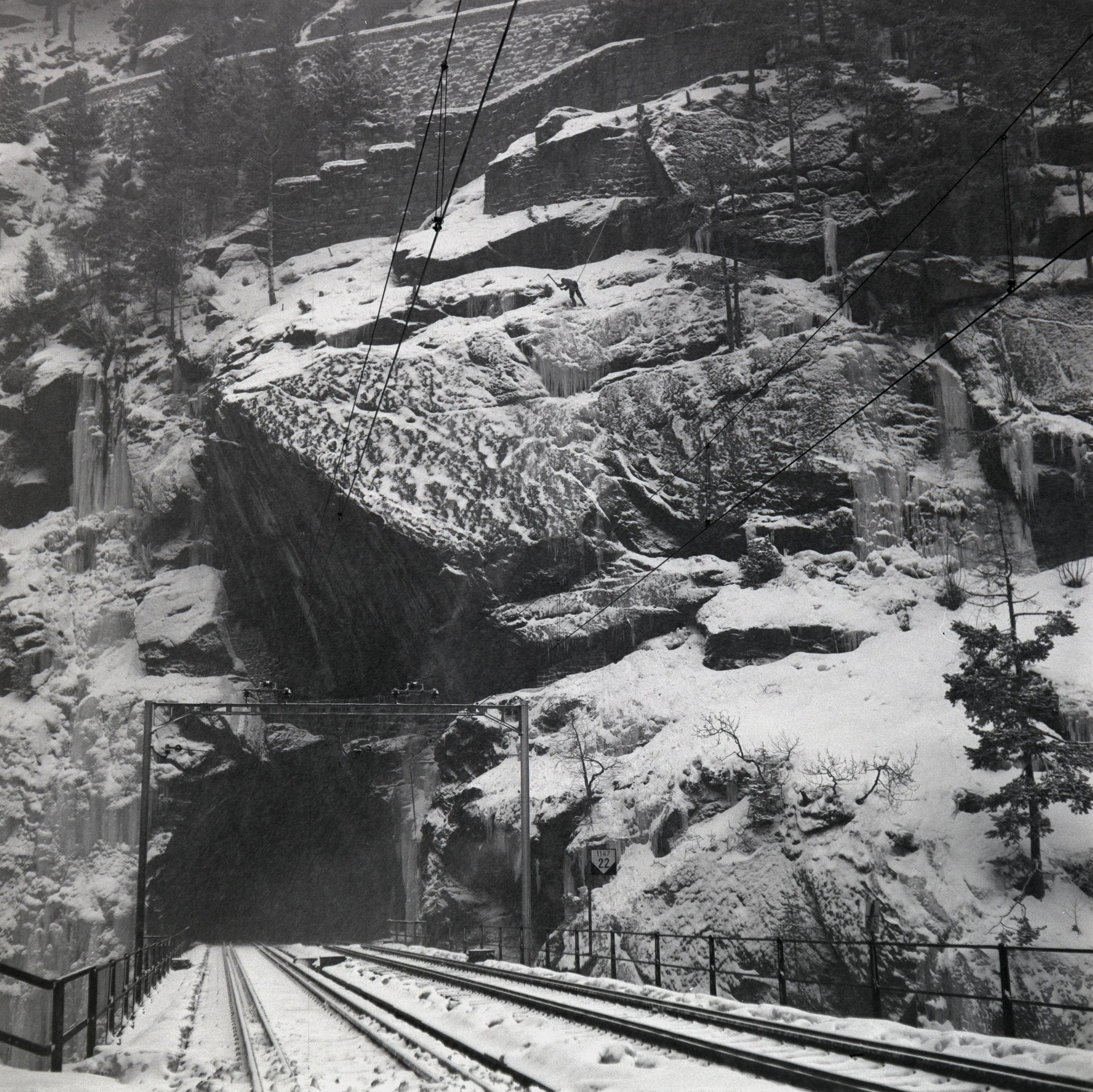 Beim Bild befindet sich folgende Notiz: QW 27 - 76Eis-Räumung an der Gotthard-Bahn