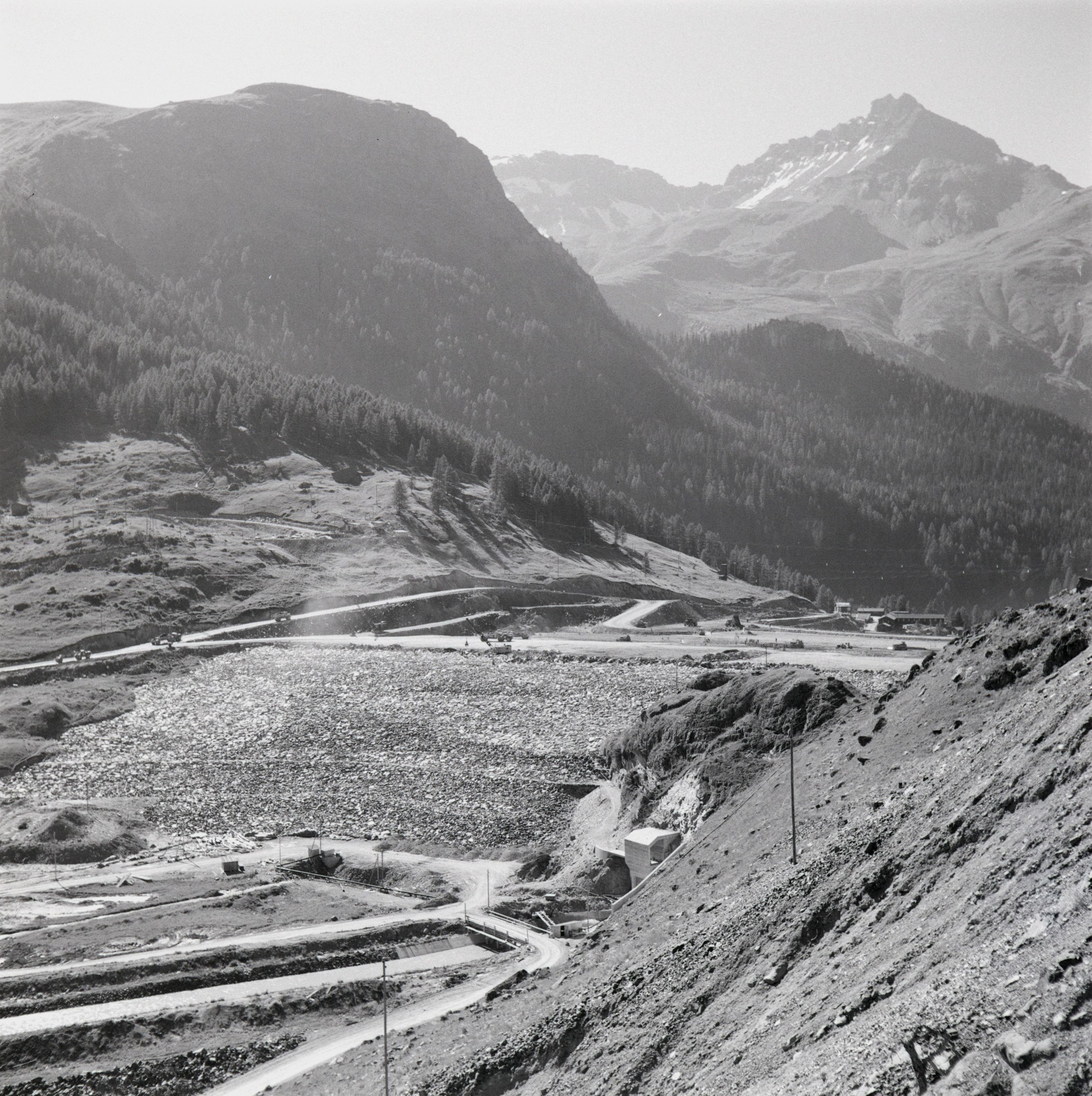 Beim Bild befindet sich folgende Notiz: RA 48 - 94Stausee Marmorera Oberhalbstein Bünden Juli 1953