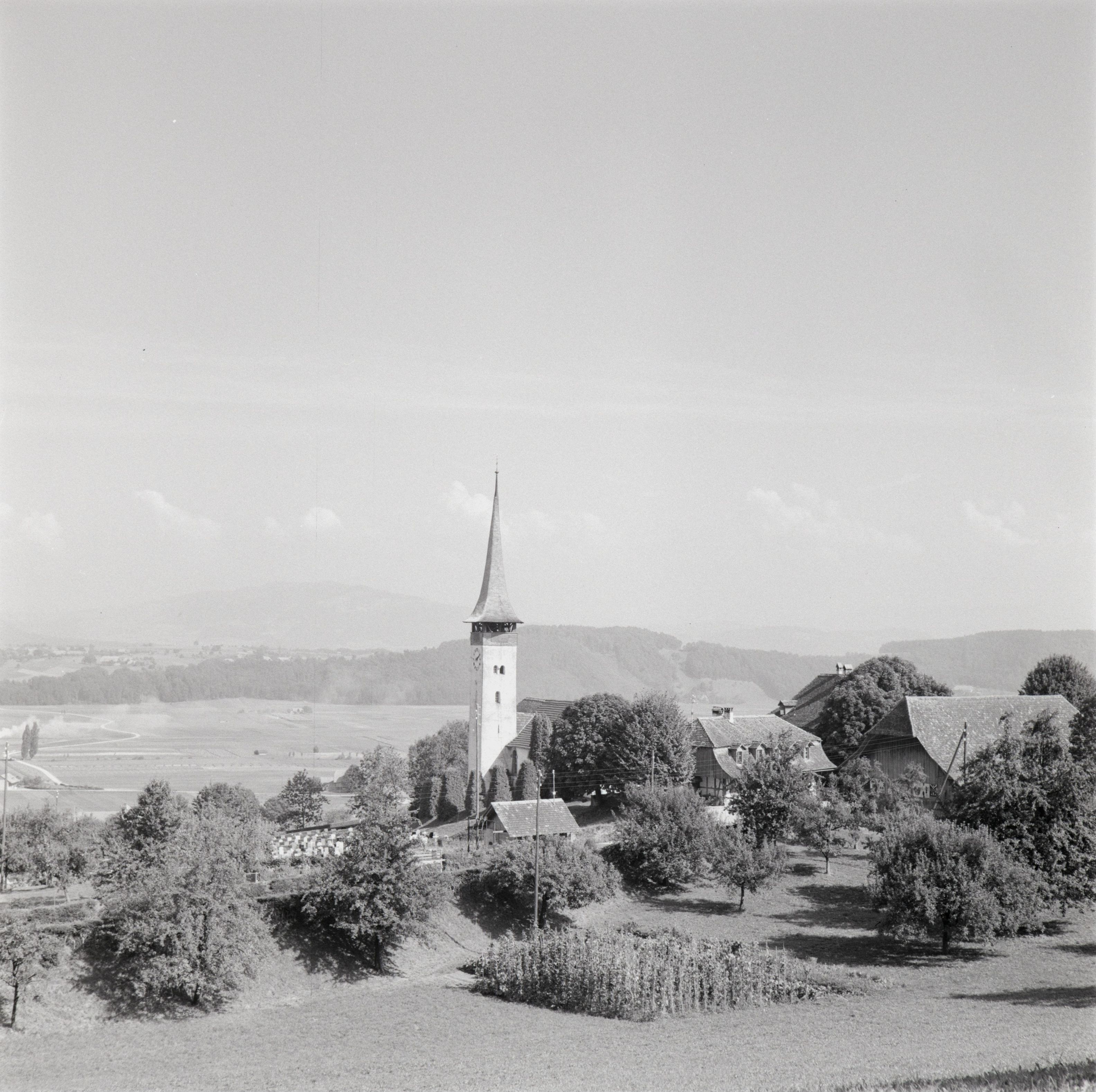 [Aufnahme eines Dorfes mit Kirche im Gürbetal]