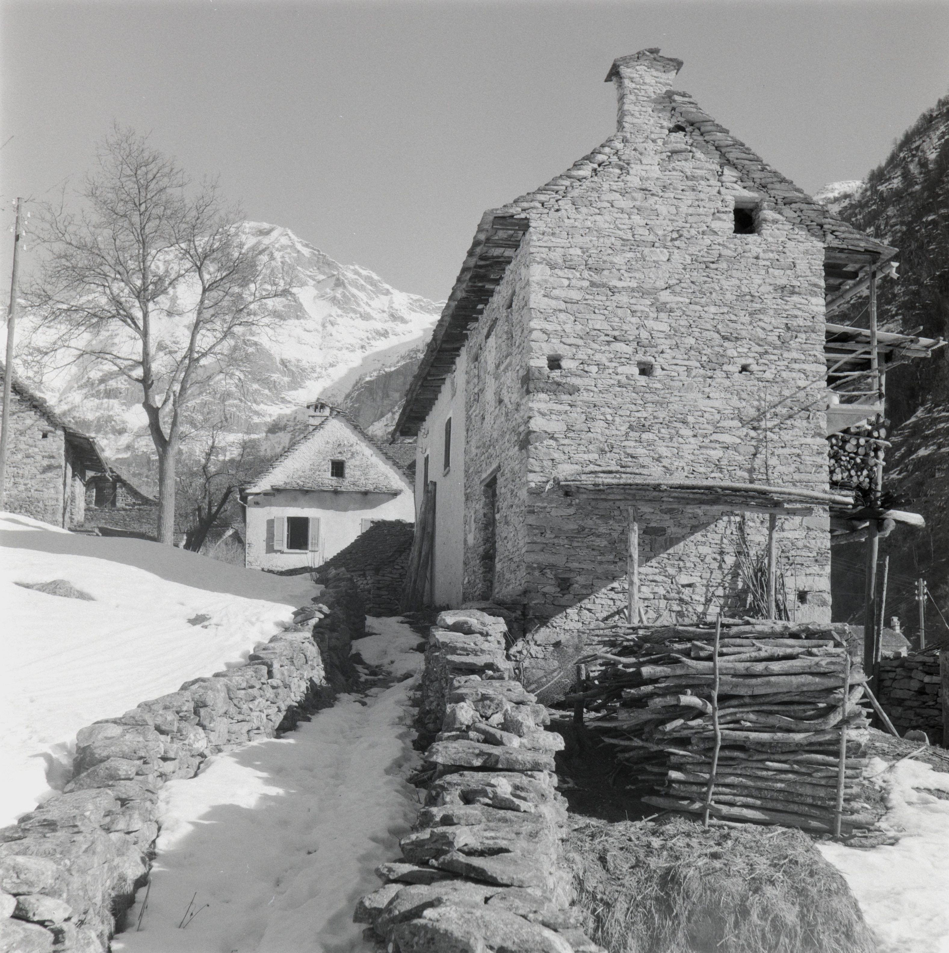 Beim Bild befindet sich folgende Notiz: RT 33 - 89Verzasca im Februar 1955