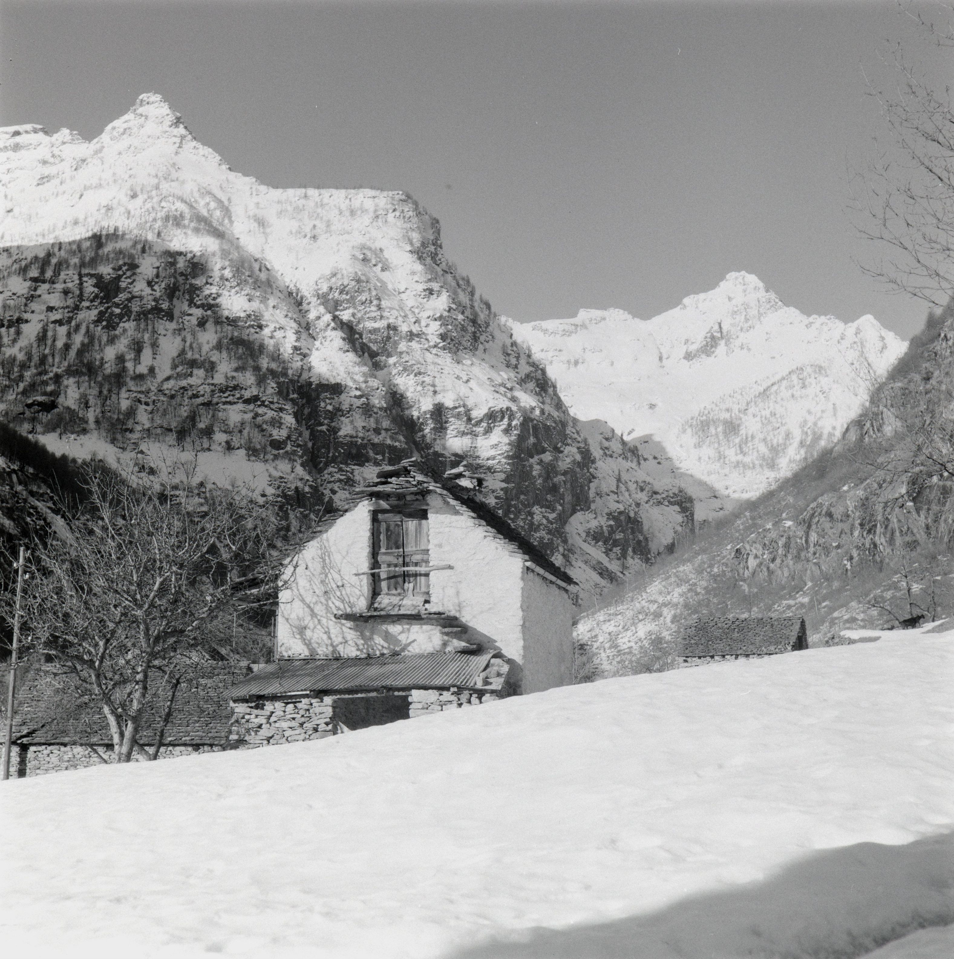 Beim Bild befindet sich folgende Notiz: RT 33 - 89Verzasca im Februar 1955