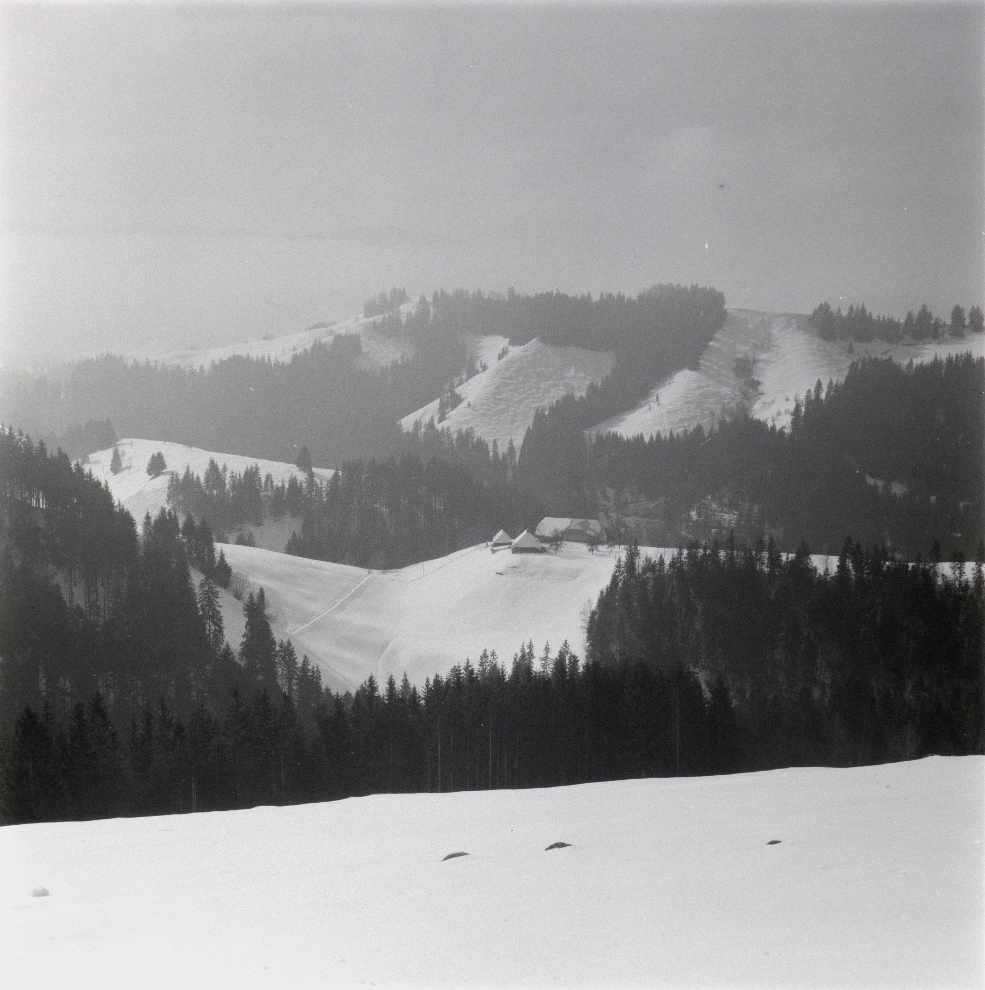 Beim Bild befindet sich folgende Notiz: RU 27 - 78Eggiwil Emmental im Winter März 1955