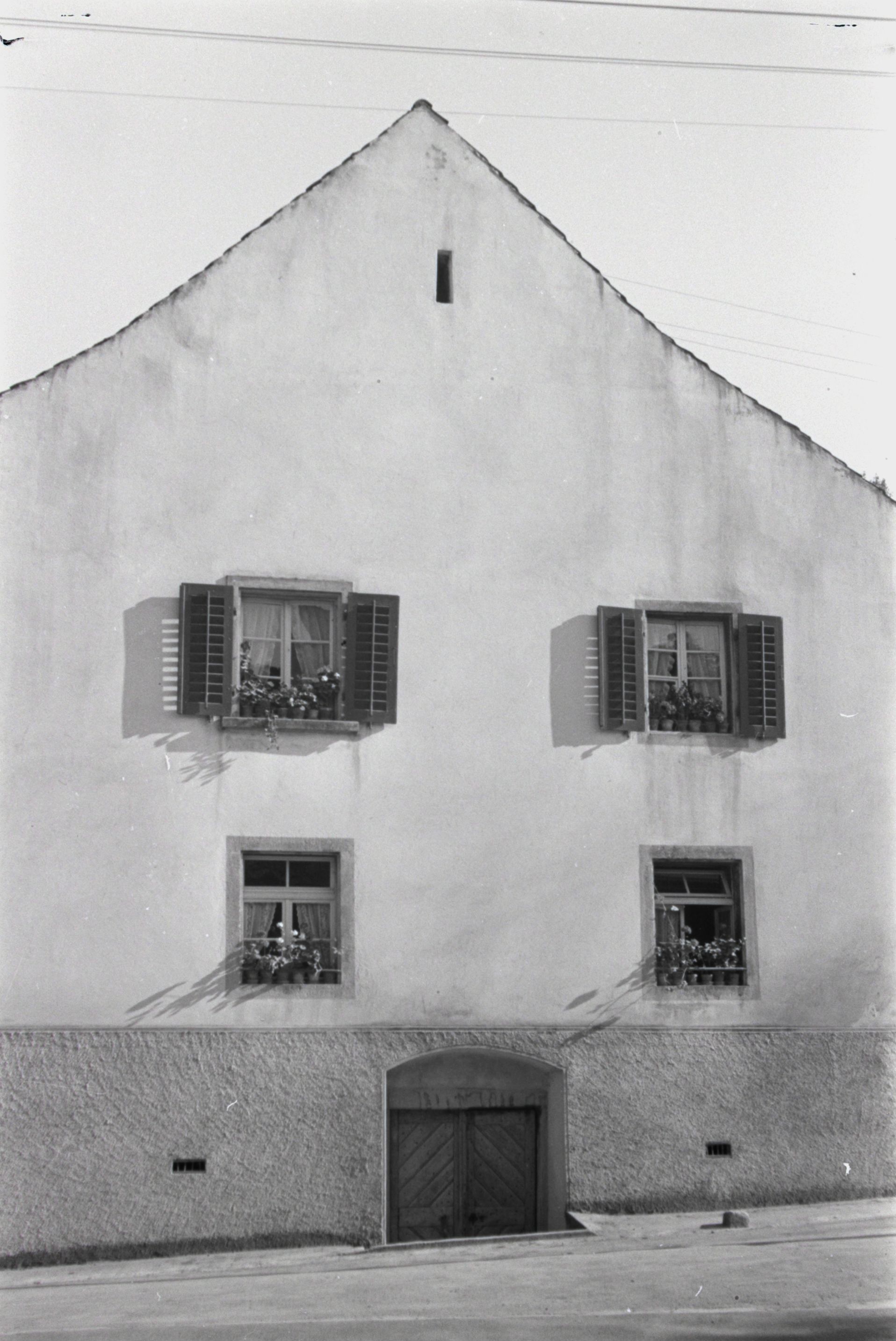 [Aargauer Bauernhaus mit tiefgezogenem Dach]