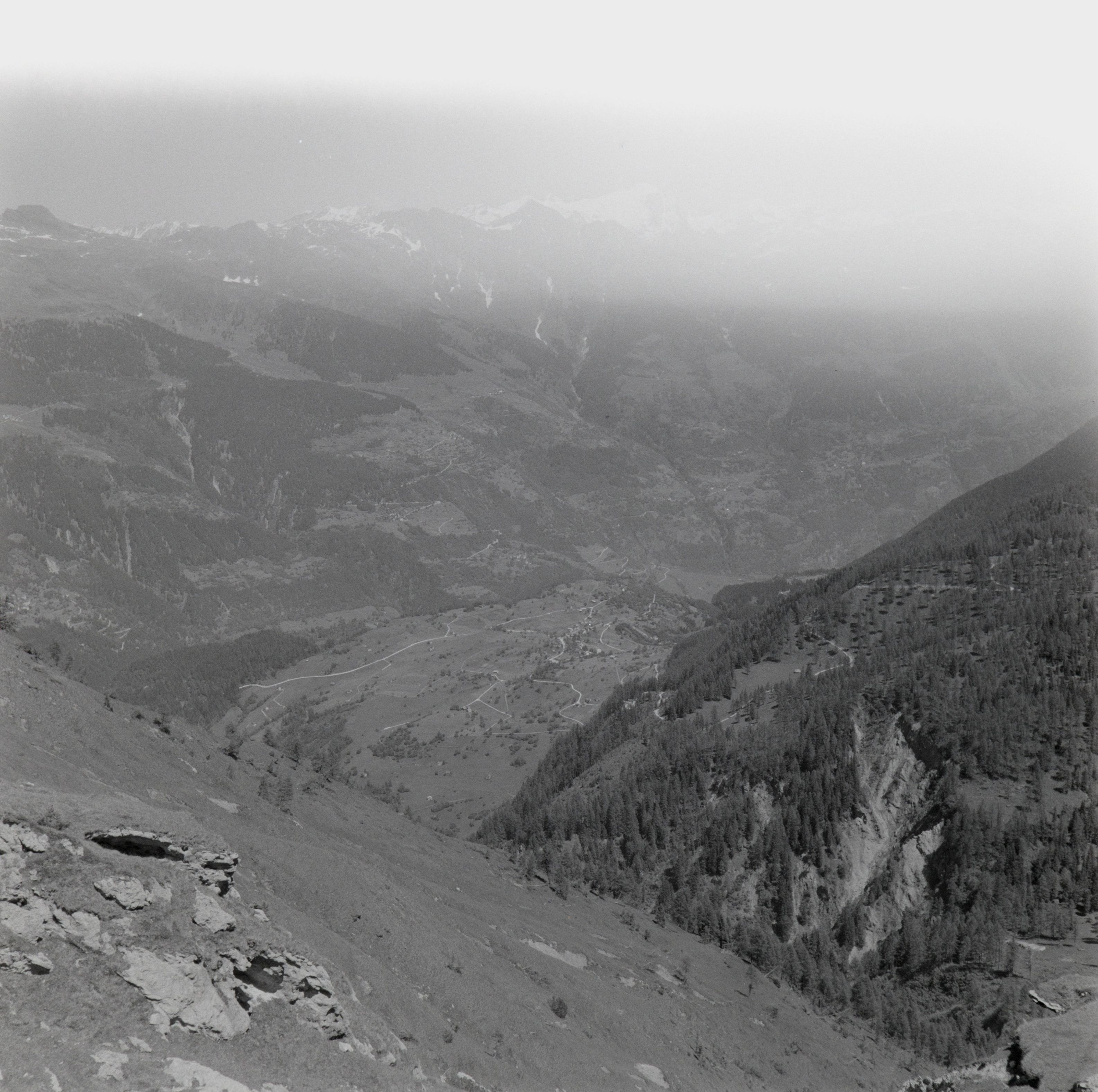 Beim Bild befindet sich folgende Notiz: SD 1 - 100Am Nord - Ost - Hang der Leventina Tessin Juli 1956