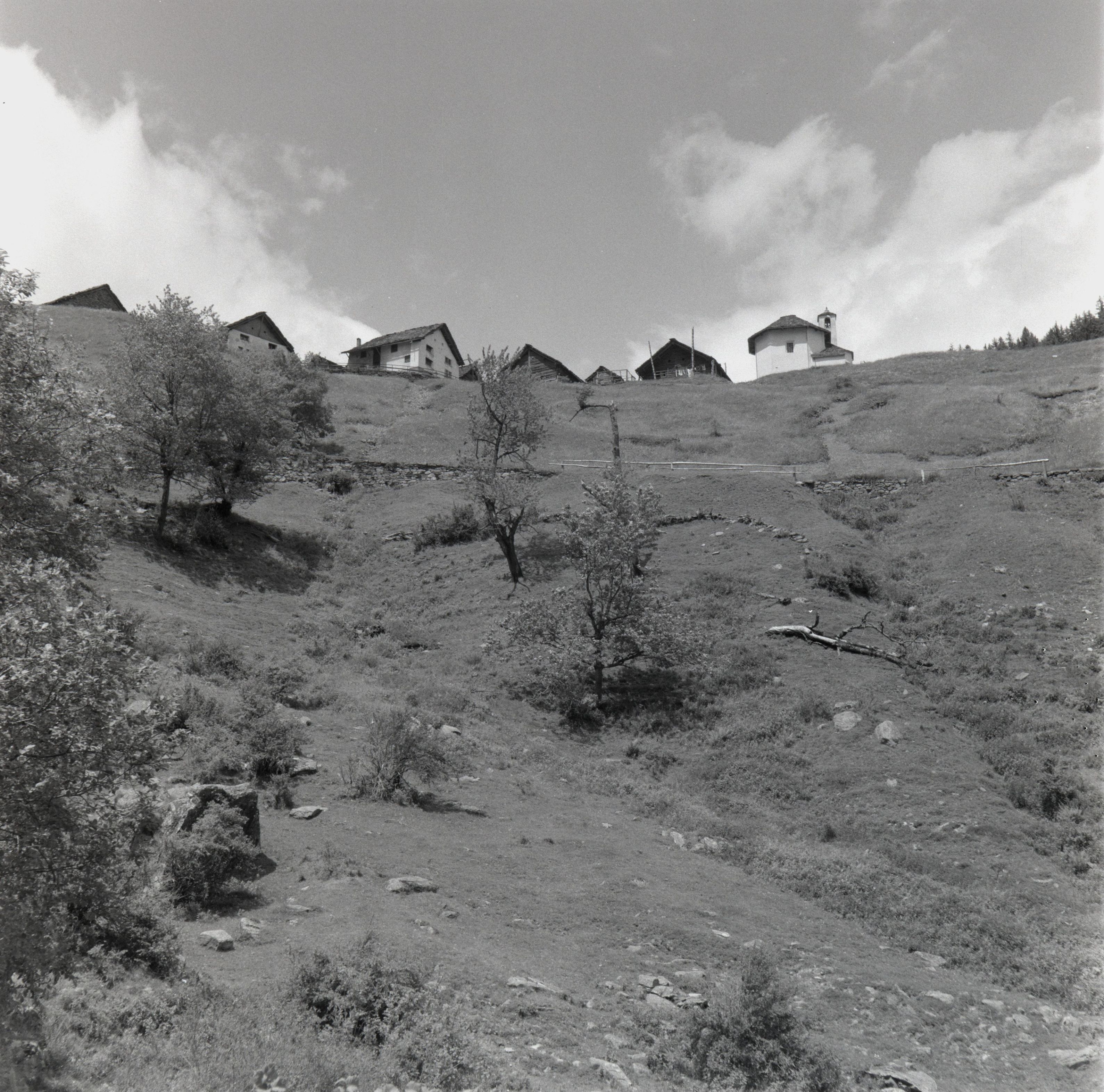 Beim Bild befindet sich folgende Notiz: SE 1 - 82Am Nord - Ost - Hang der Leventina Tessin Juli 1956