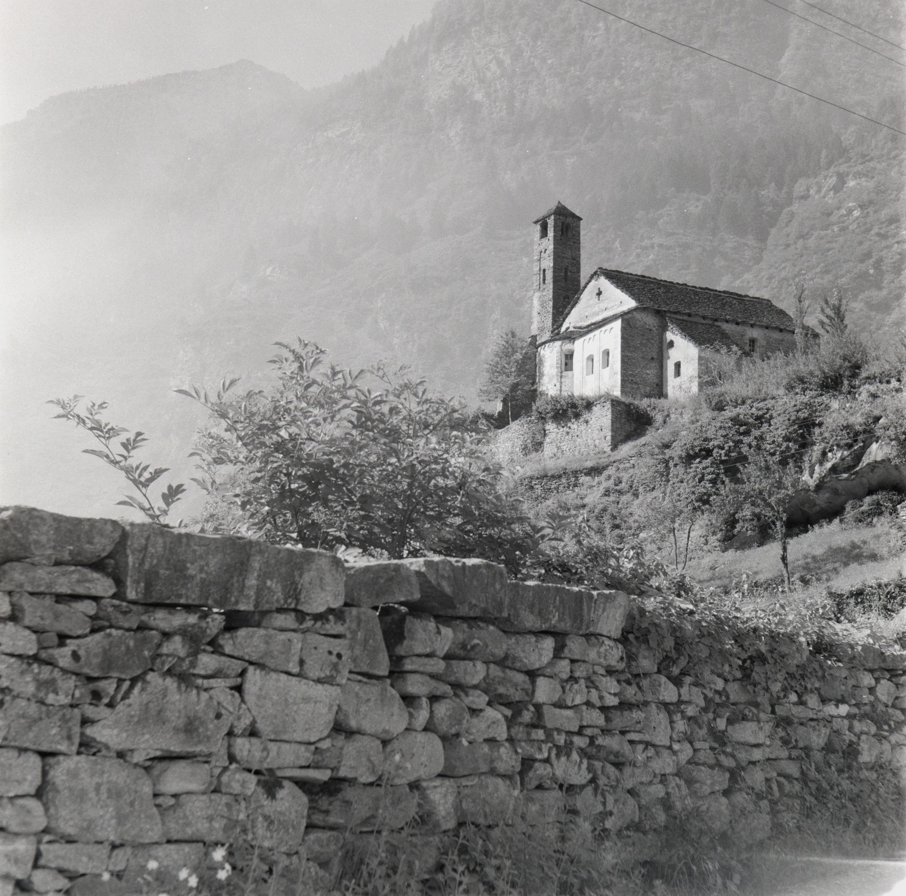 Beim Bild befindet sich folgende Notiz: SE 1 - 82Am Nord - Ost - Hang der Leventina Tessin Juli 1956