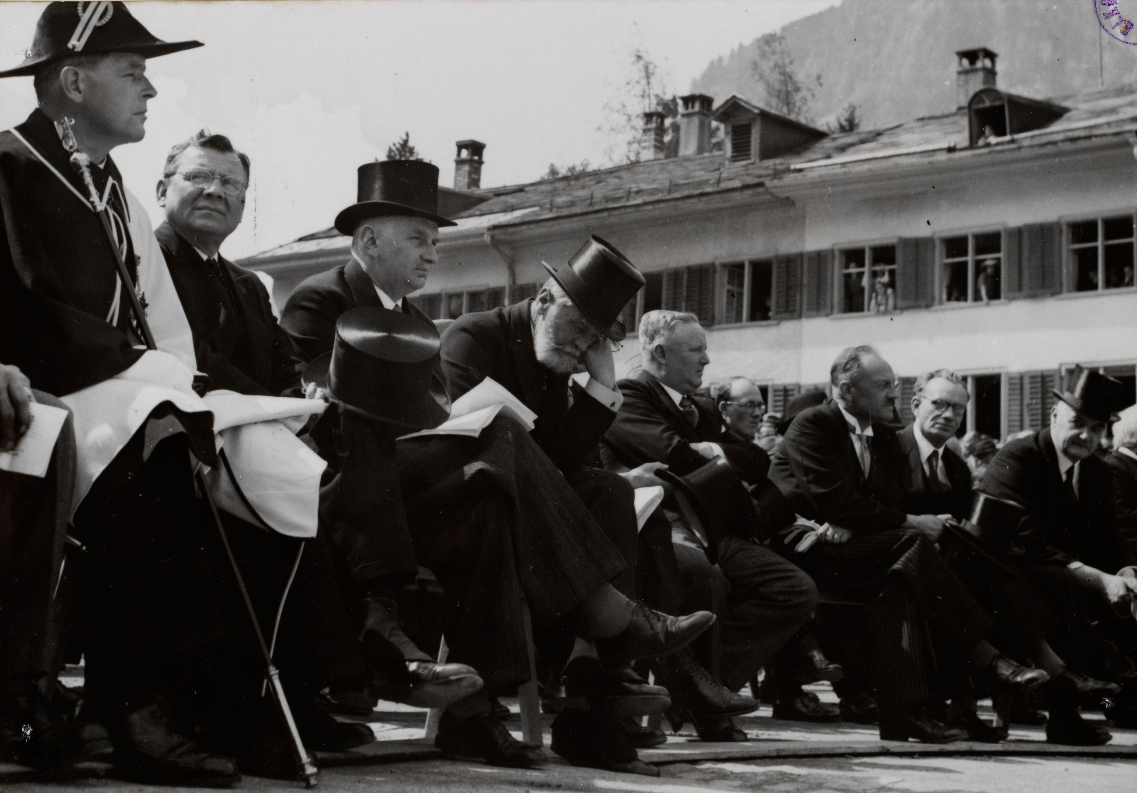 Notiz beim Bild:Landsgemeinde. Die Basler Regierung an der Landsgemeinde in Glarus. Photo: [leer] Reprod. recht: Photopress Datum während d. Krieges 1939-45? GLARUS GL; B 2513 E 689