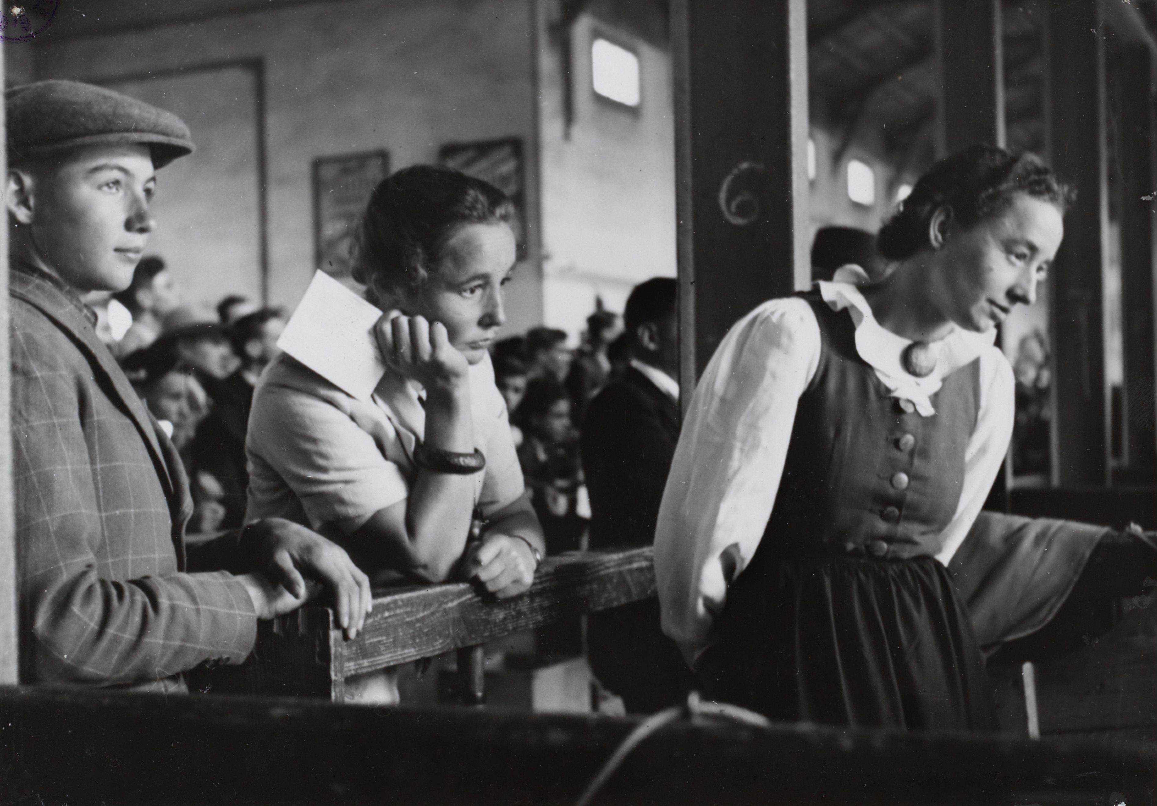 Beim Bild befindet sich folgende Notiz: Züricher Knabenschiessen 1941: Buben aus der ganzen Schweiz- als Gästeschützen im Albisgüetli!Ein typisches Bild vom „erweiterten“, d.h. auf ansehnliche ausserkantonale Kontingente ausgedehnte Knabenschiessen: Zwei Lehrerinnen aus dem abgelegenen Münstertal in Graubünden, haben, weil die Lehrer selbst zufolge Aktivdienst nicht dabei sein konnten, die Buben freudig nach Zürich begleitet und schauen nun im Schiesstand Albisgüetli gespannt, welche Kelle hinten am Zielhang erscheint. Nur zu gern möchte man doch den Züricher Buben den Schützenkönigstitel entführen!