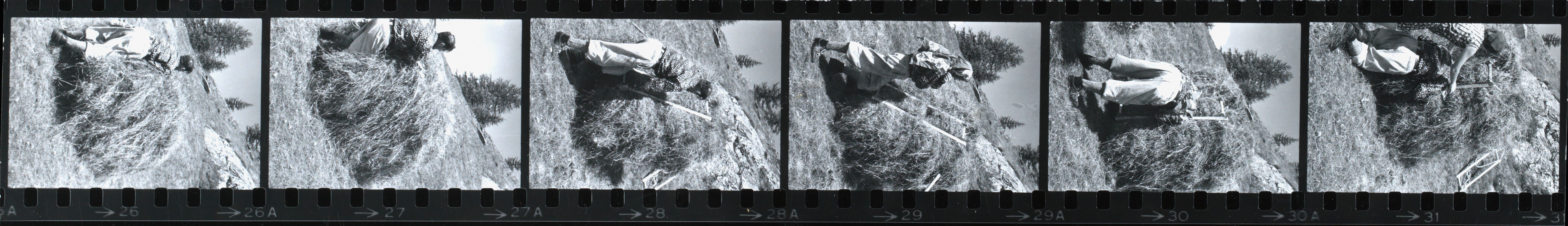 [Landwirtschaft, Heu, Arbeitsgerät, Mann, Arbeitskleidung, Kopfbedeckung]
