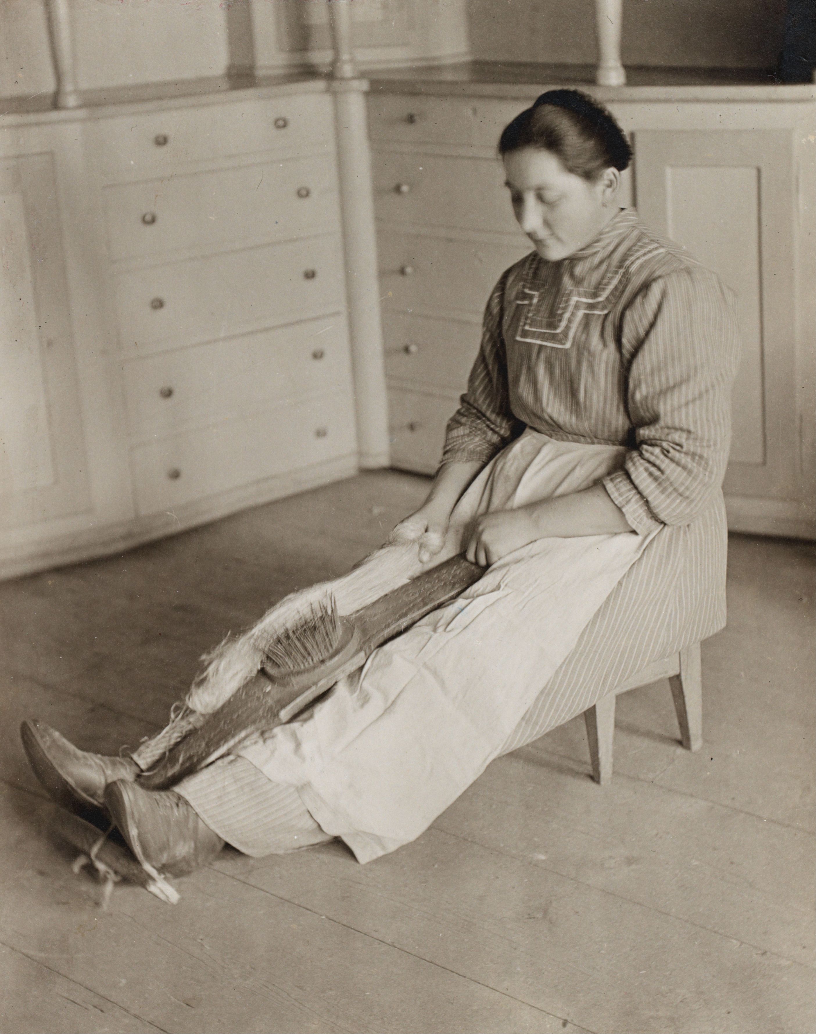 Hecheln des Flachses. Situationsbild aus Sedrun. Aufn: Pater Hager. Sammlung: Brockmann-Jerosch, Zürich, 24. September 1941; B 495 296