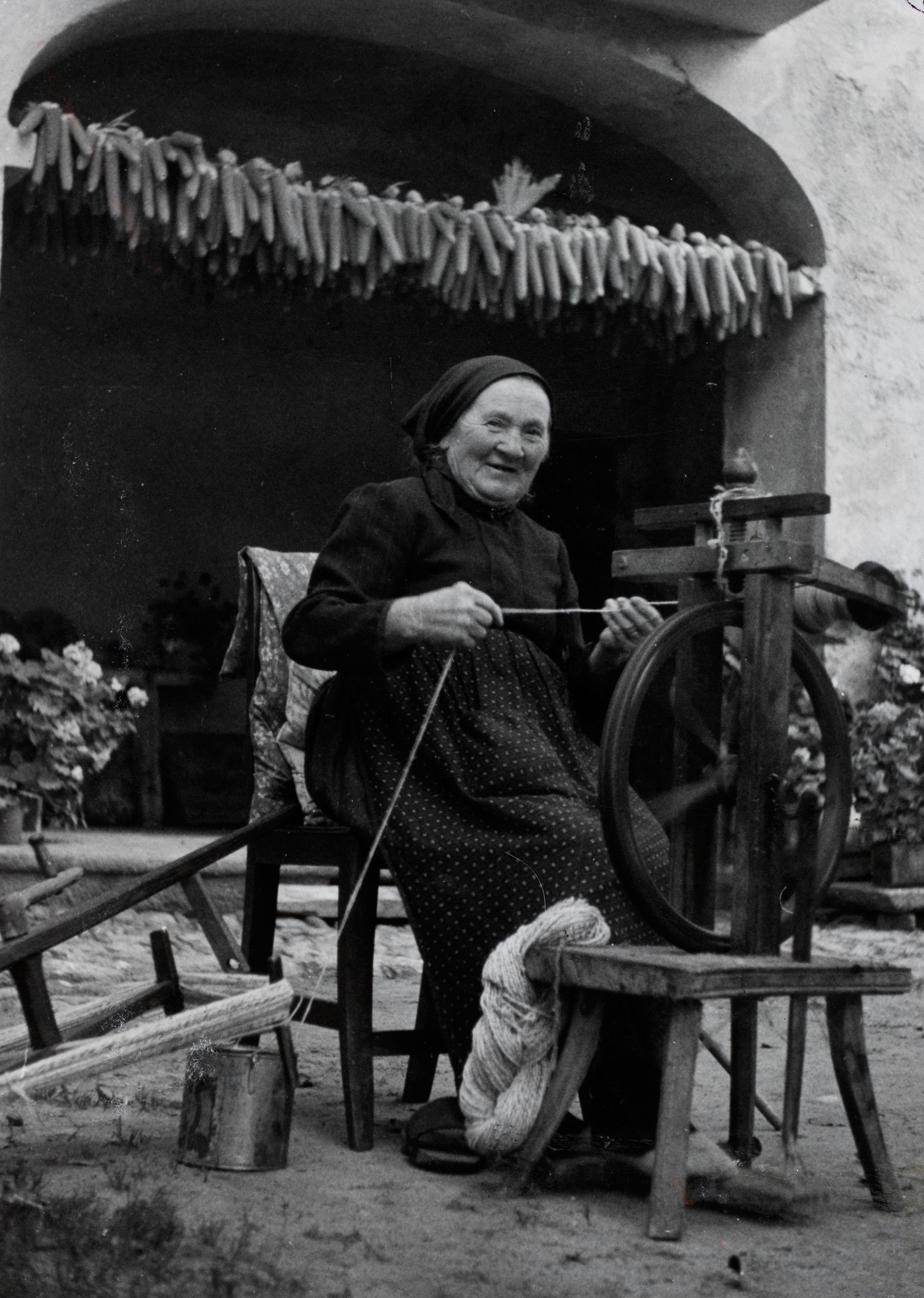 Bauernfrau beim Zwirnen; Tessin; Photo Engler, Ascona; 13. April 1945; Don. A. Baeschlin; Publikationserlaubnis: anfragen bei E.; B 59 280