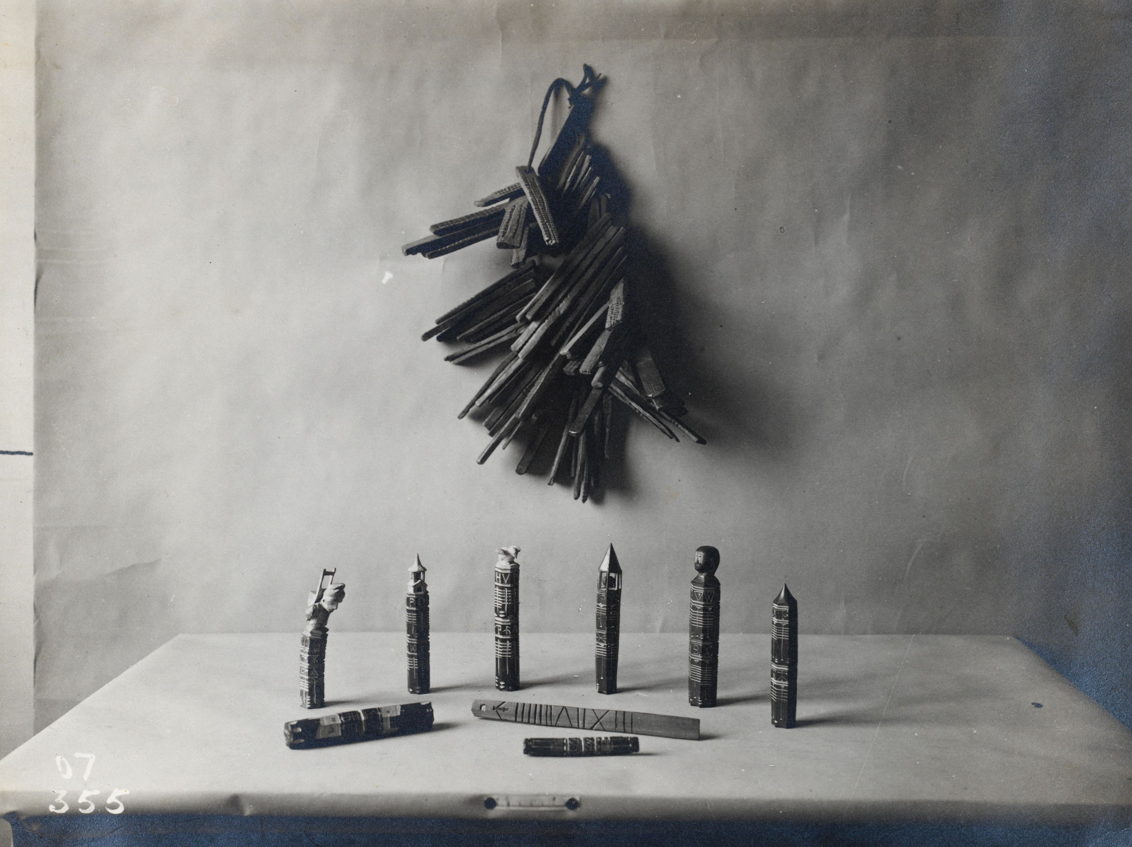 Beim Bild befindet sich folgende Notiz: Milchtesseln. Stialas de latg, GR TAVETSCH, Samml. f. Völkerkunde Basel; Photo; Publ. SAVk 11 (1907), 186; B 922, 139