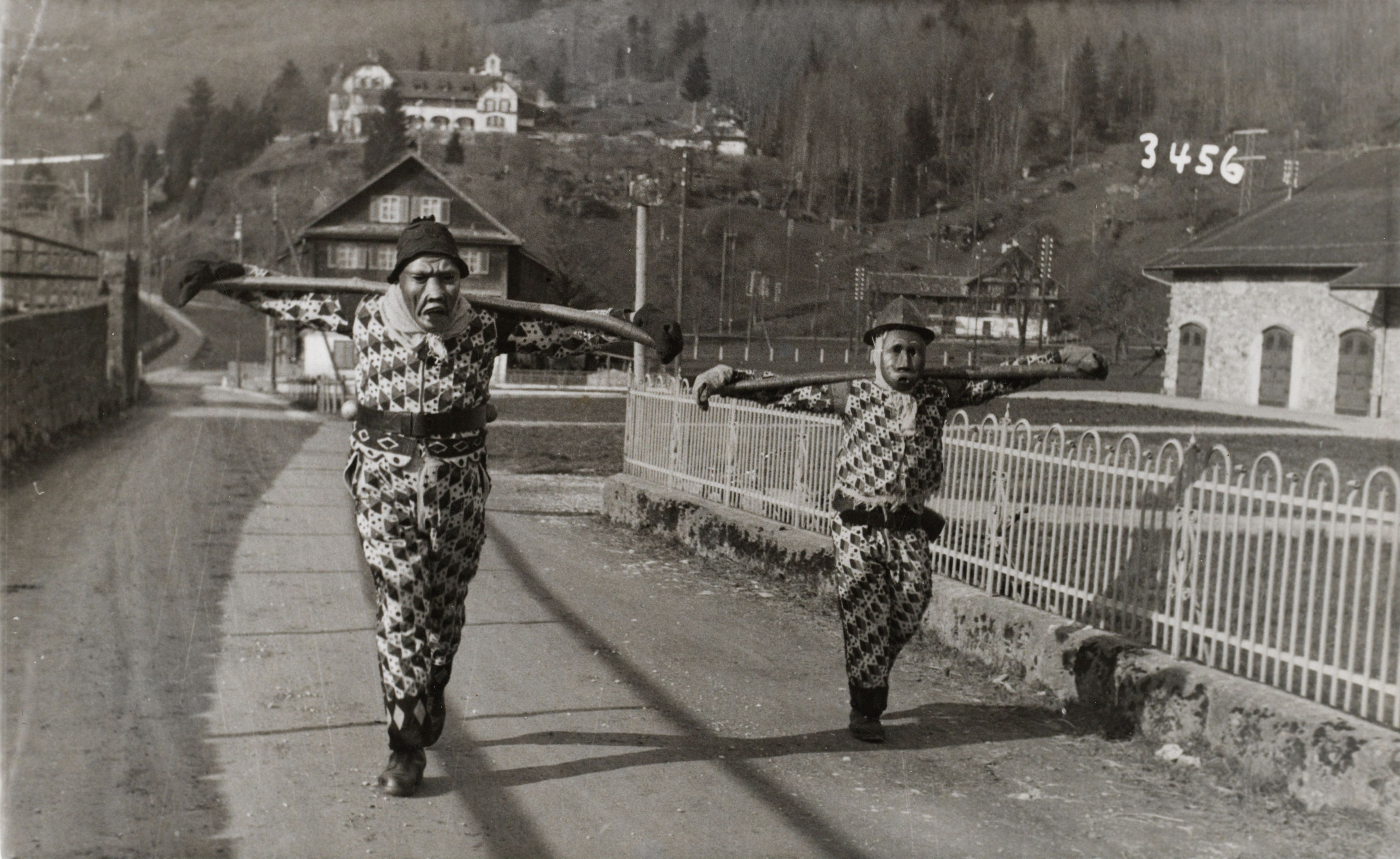 Auf der Karteikarte steht mit Schreibmaschine geschrieben: Fastnachtsfiguren; "Talibasch" (mit heraushängender zunge) und "Fäledi" (Väledii) vgl. P. Hugger, Amden (Basel 1961) S. 147, Anmerk. 1