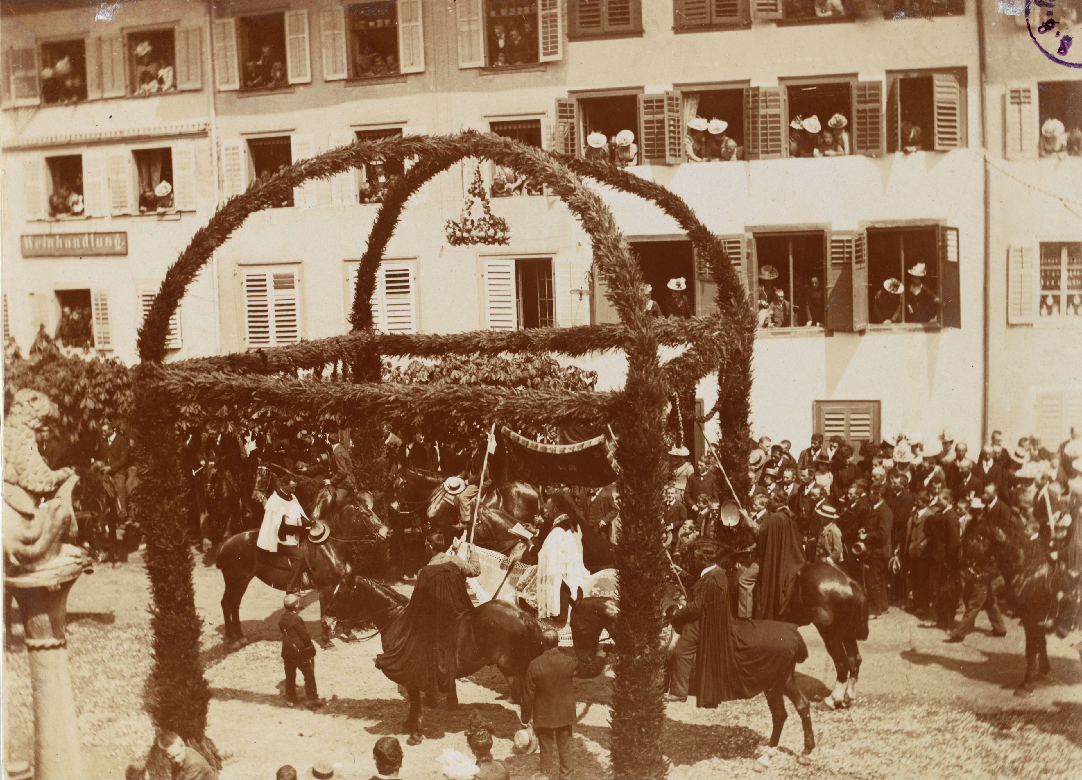 Auf der Rückseite befindet sich folgende Notiz: No 1516 705; Auffahrtsumritt Segenerteilung 1913; LU Sempach; Photo: A. Schaller-Donauer; Publ. SAVk 17, 1913, 240