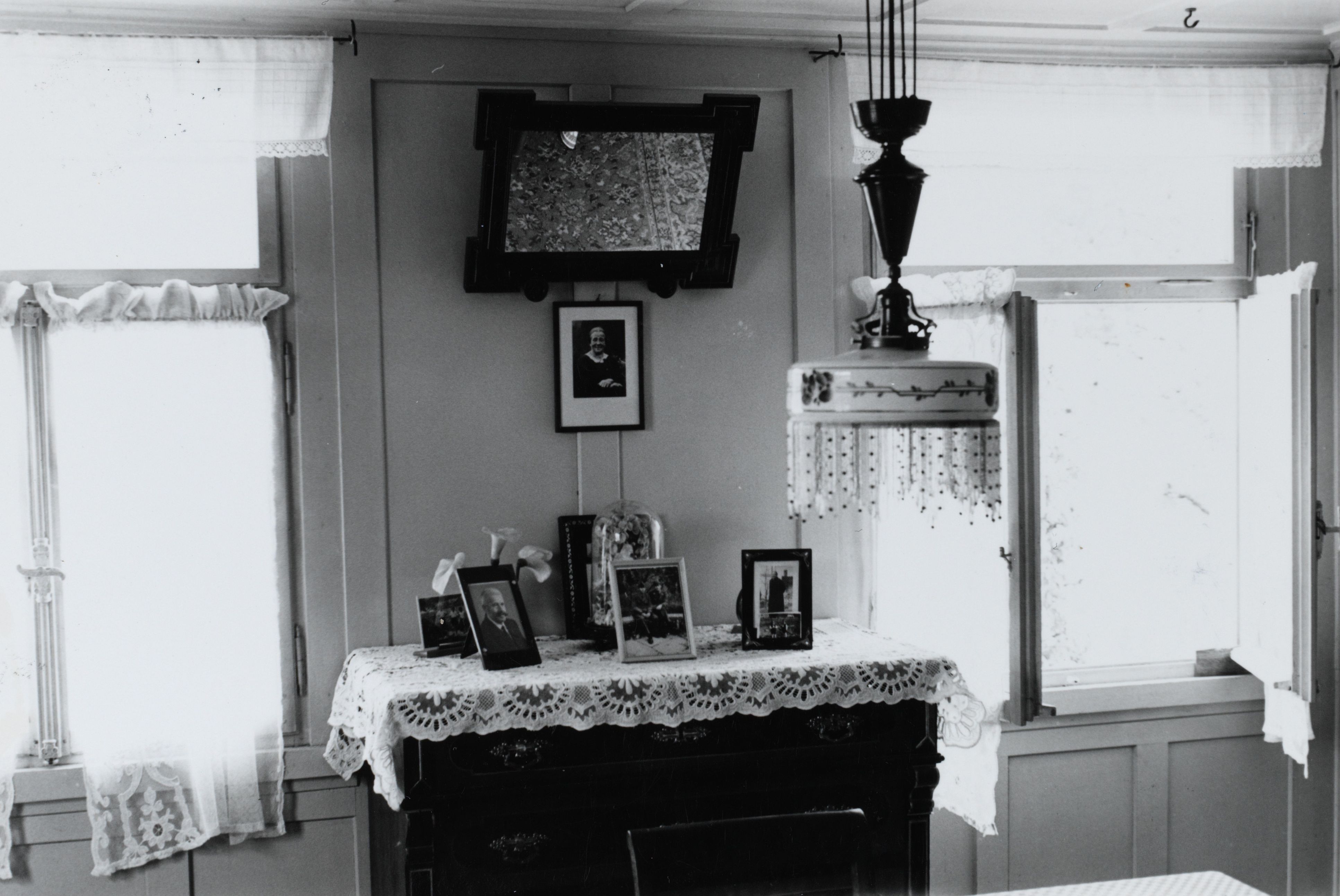 Auf der Karteikarte steht mit Schreibmaschine geschrieben: Totenandenken und Familienfotos werden gerne auf der Kommode aufgestellt (vgl. P. Hugger, Werdenberg. Basel 1964. S. 97)