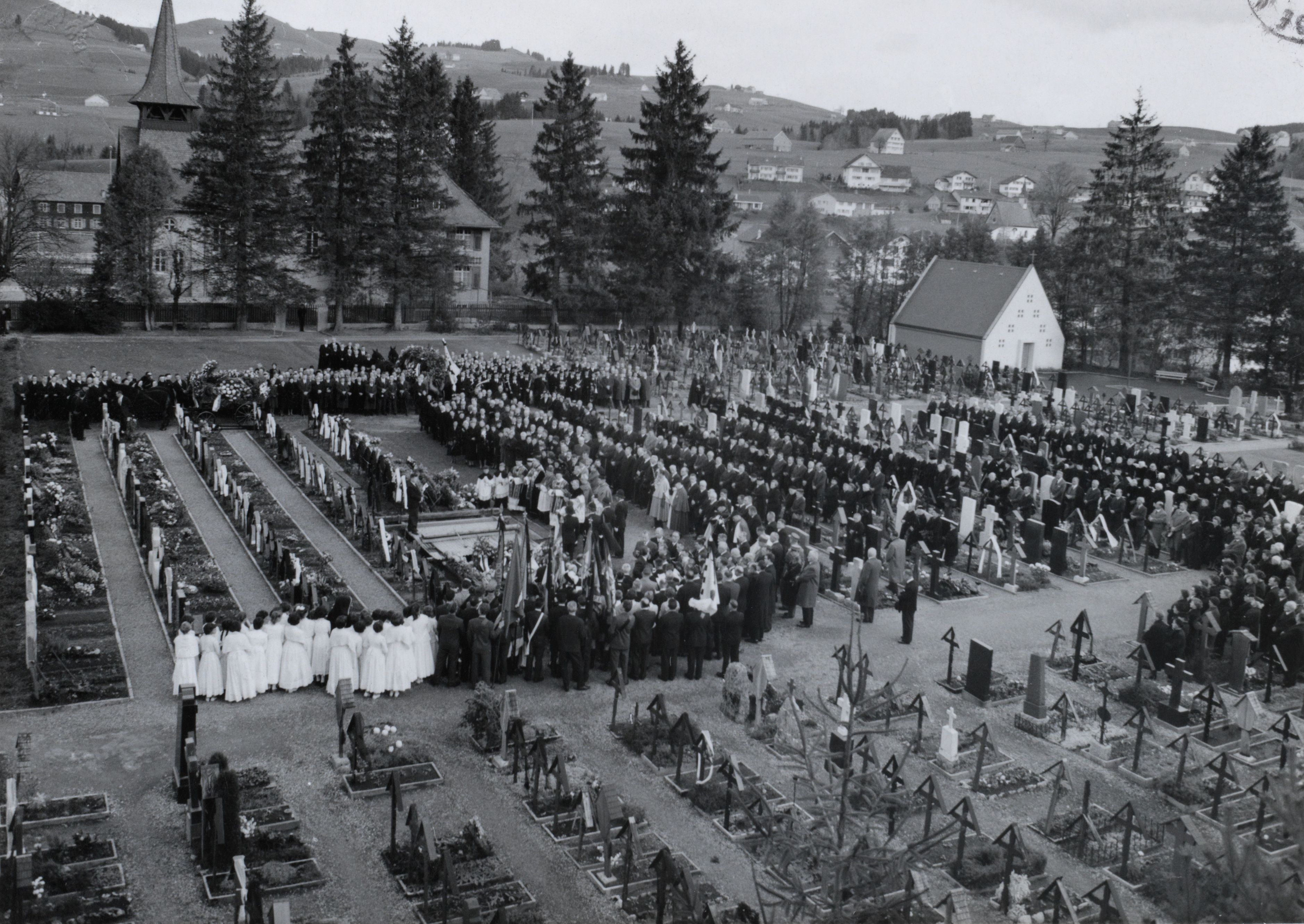 Auf der Karteikarte steht mit Schreibmaschine geschrieben: Friedhofkreuze in Appenzell; Beerdigung von Herrn Landamman Beat Dörig 2. Nov. 1961