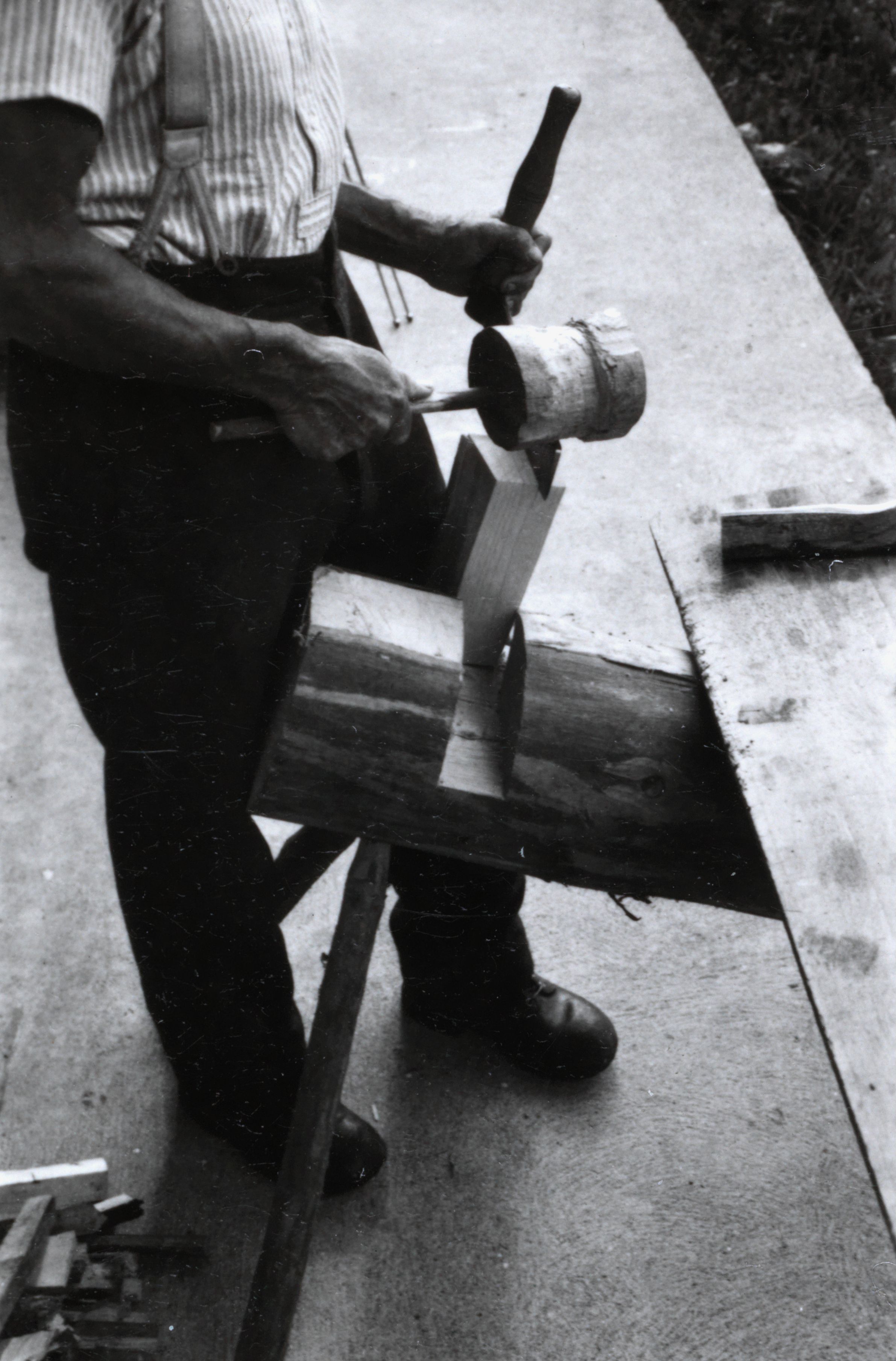 Auf der Karteikarte steht mit Schreibmaschine geschrieben: Schindelmachen (Text siehe Hugger, Amden S. 109-111)