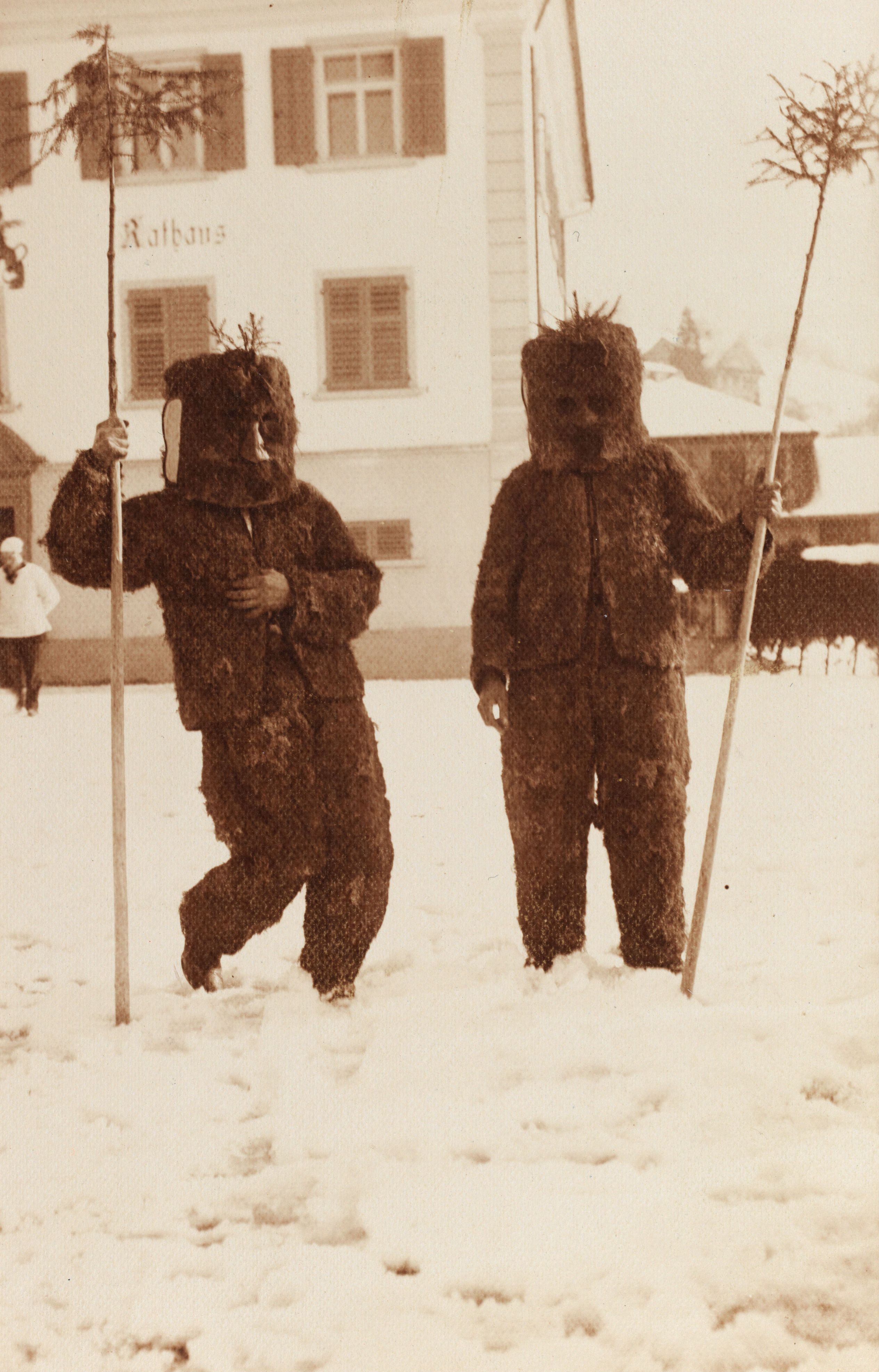 Auf der Karteikarte steht mit Schreibmaschine geschrieben: Älplerfest; "Tschämmeler" in Küssnacht am Rigi (Wildleute)