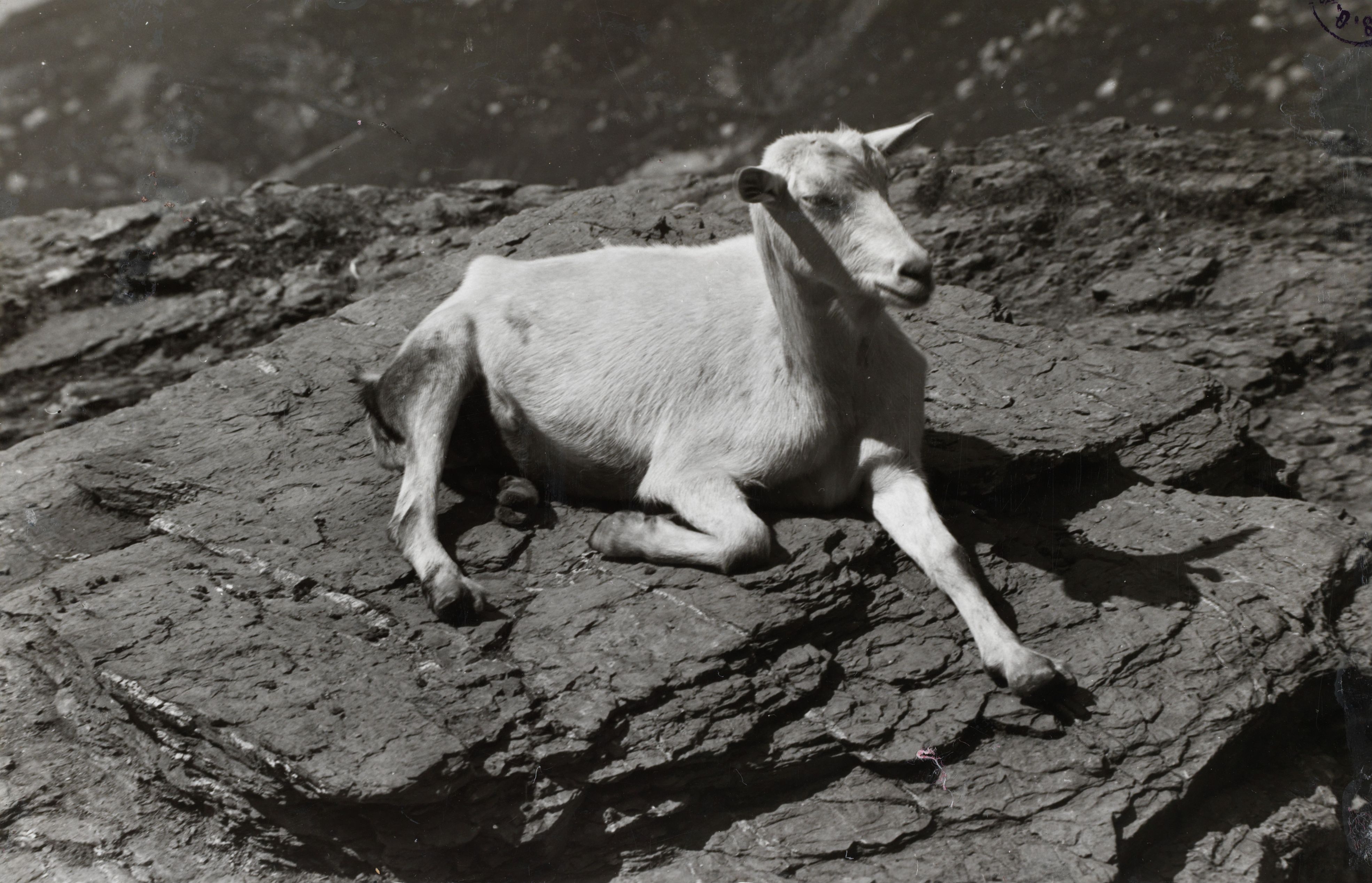 Auf der Rückseite befindet sich folgende Notiz: 2553 367; d'Adelbodmersgitza" die weisse Saanerziege Photo E. Gyger, Adelboden