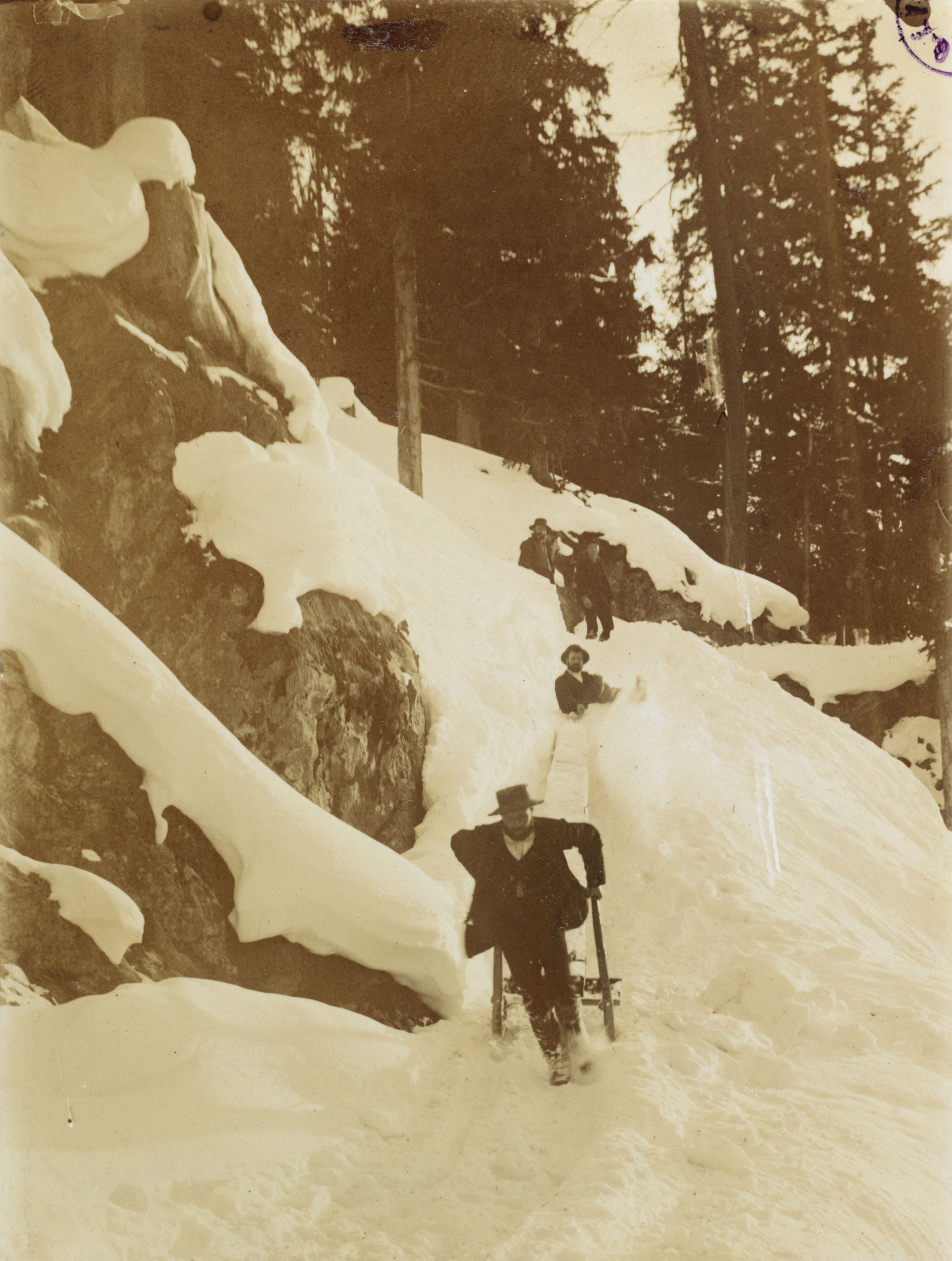 Auf der Rückseite befindet sich folgende Notiz: B 570 322; Schlitten; für Holztansport; VS Kippel Wald Photo: J. Werlen, Sitten Cliché: Nyfeler, Kippel