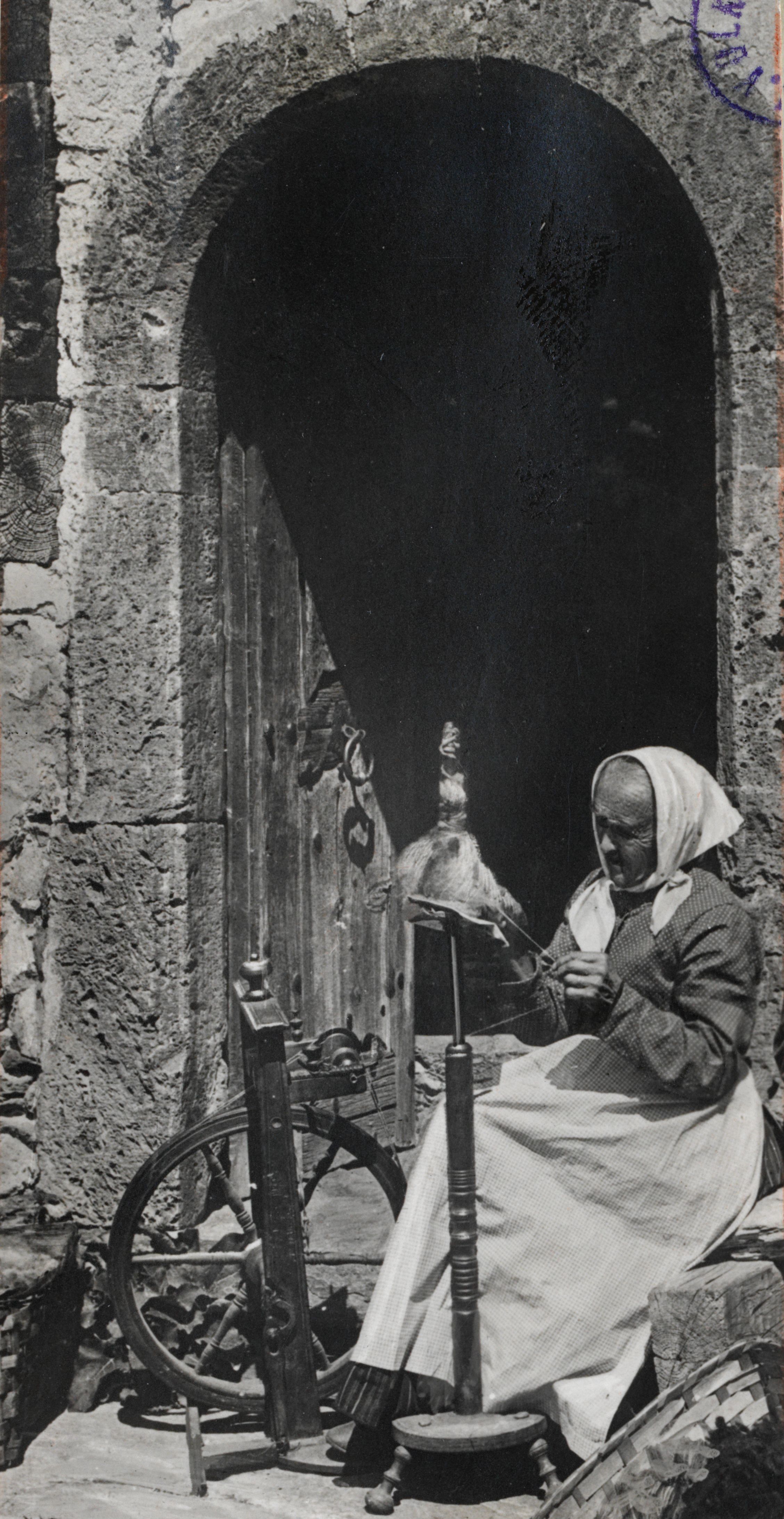 Auf der Karteikarte steht mit Schreibmaschine geschrieben: Spinnen; Spinnerin