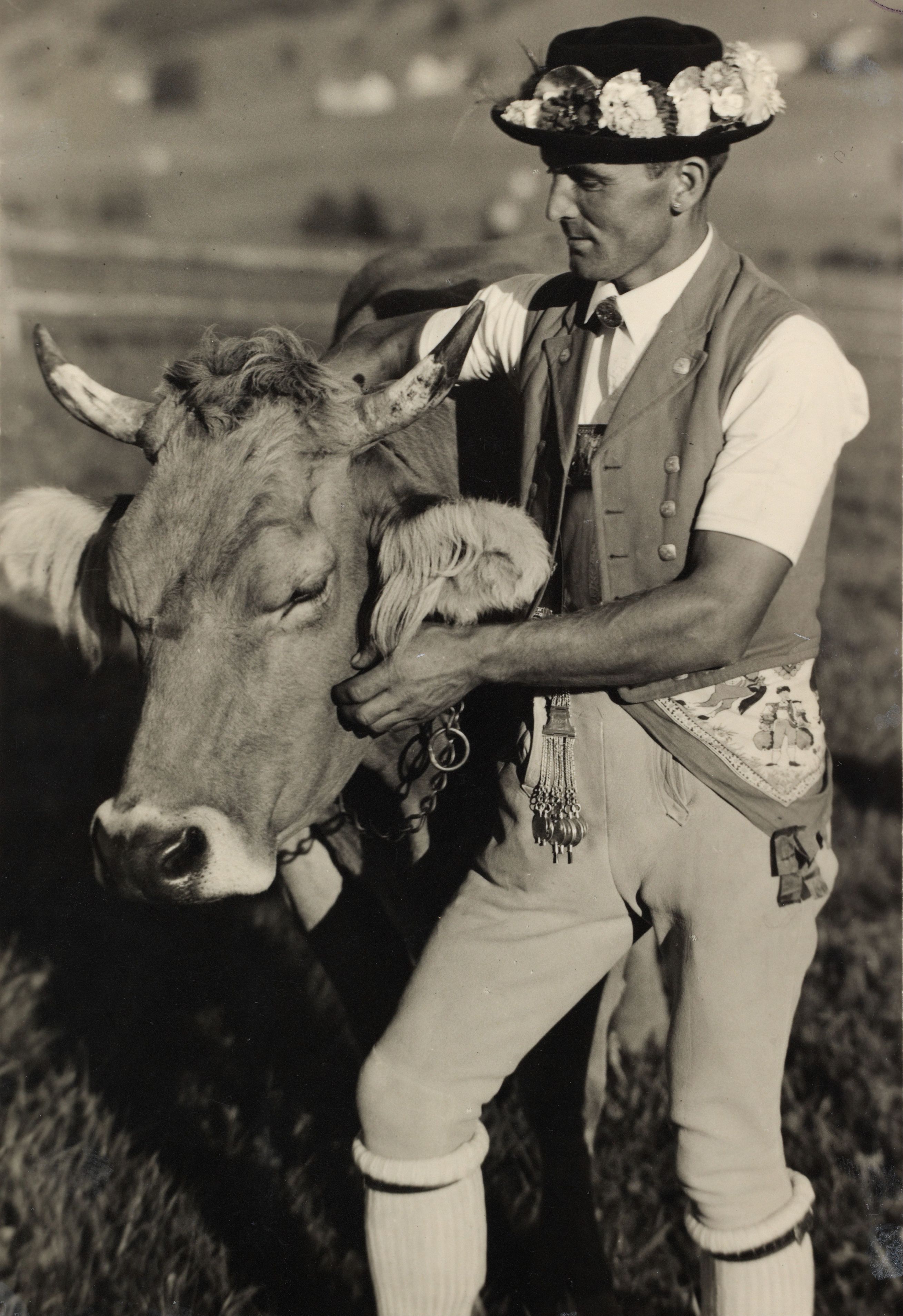 Auf der Karteikarte steht mit Schreibmaschine geschrieben: Tracht; Berufe; Appenzeller Senn