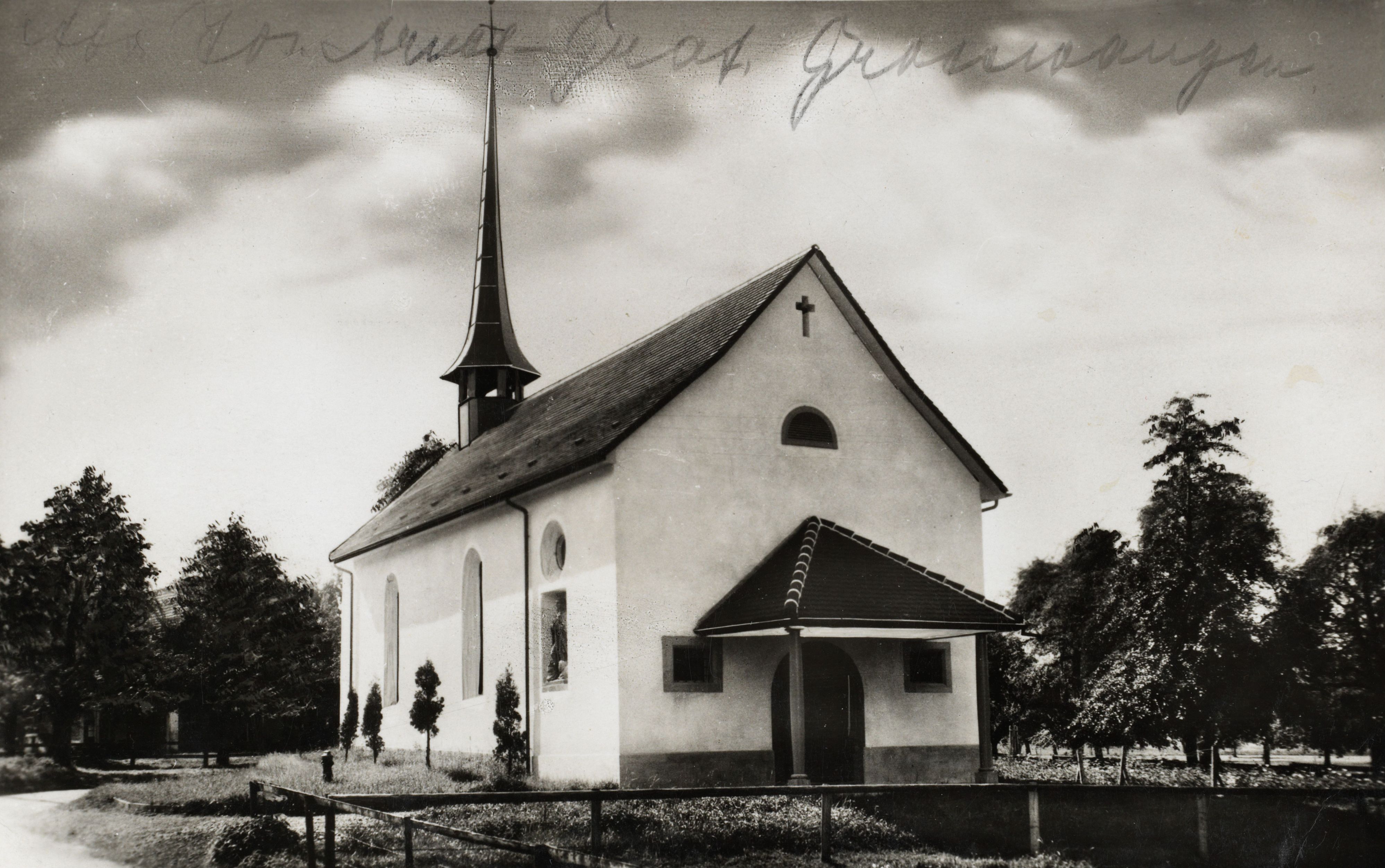 Auf der Rückseite befindet sich folgende Notiz: Kapelle St. Jost und Wendelin in Rüdiswil bei Ruswil. - Gebaut 1639, renoviert 1936 Fabrication Suisse Rückseite der Karte zusätzlich handschriftlich beschrieben
