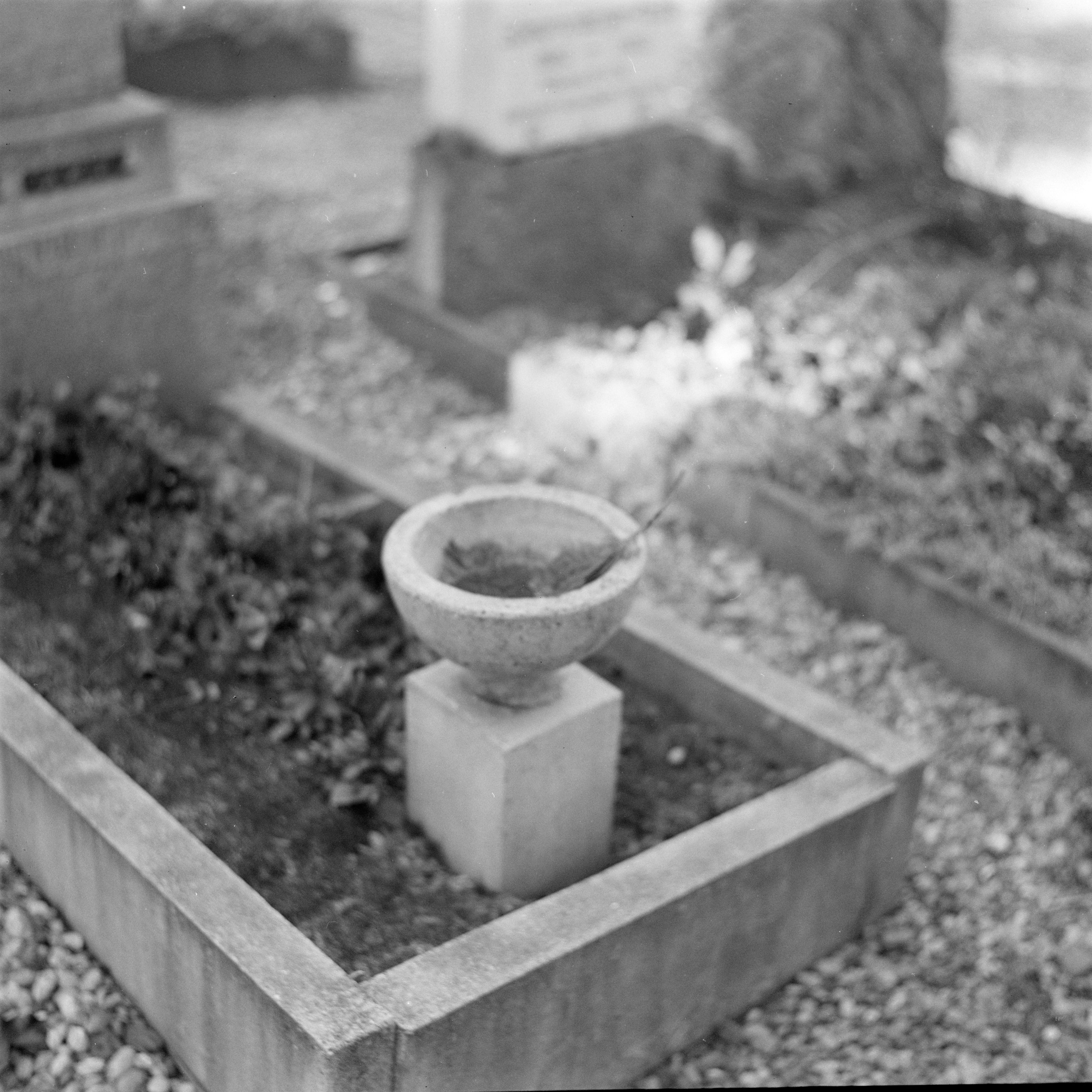 Auf der Positiv-Rückseite befindet sich folgende Notiz: Schänis Grab mit Weihwasserbecken und Wedel aus Tuja; B 1841 E 667; [Photo Wildhaber April 49]