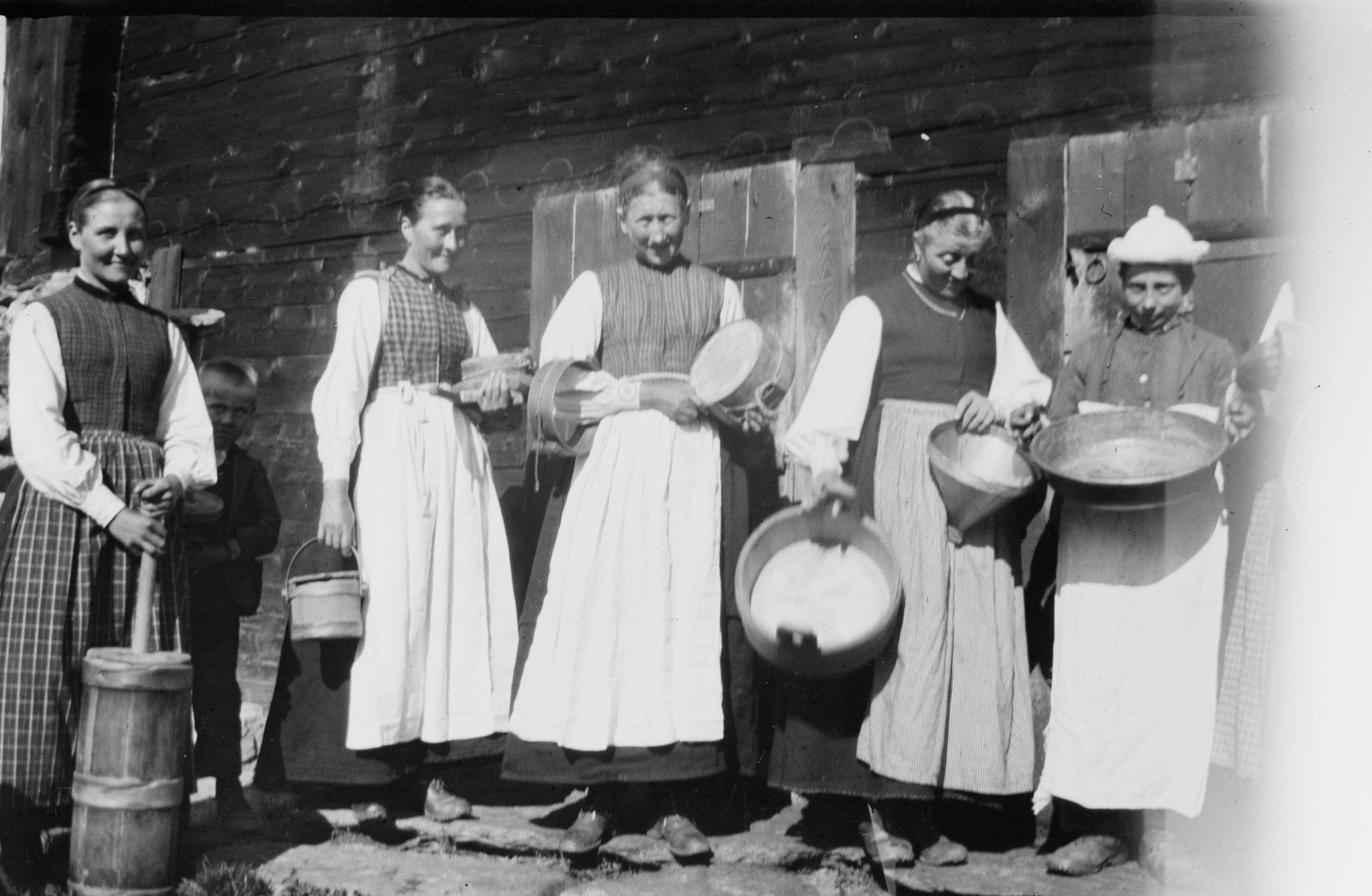 Auf der Karteikarte steht mit Schreibmaschine geschrieben: Milchgefässe und Geräte zum Abrahmen; links ein Stossbutterfass