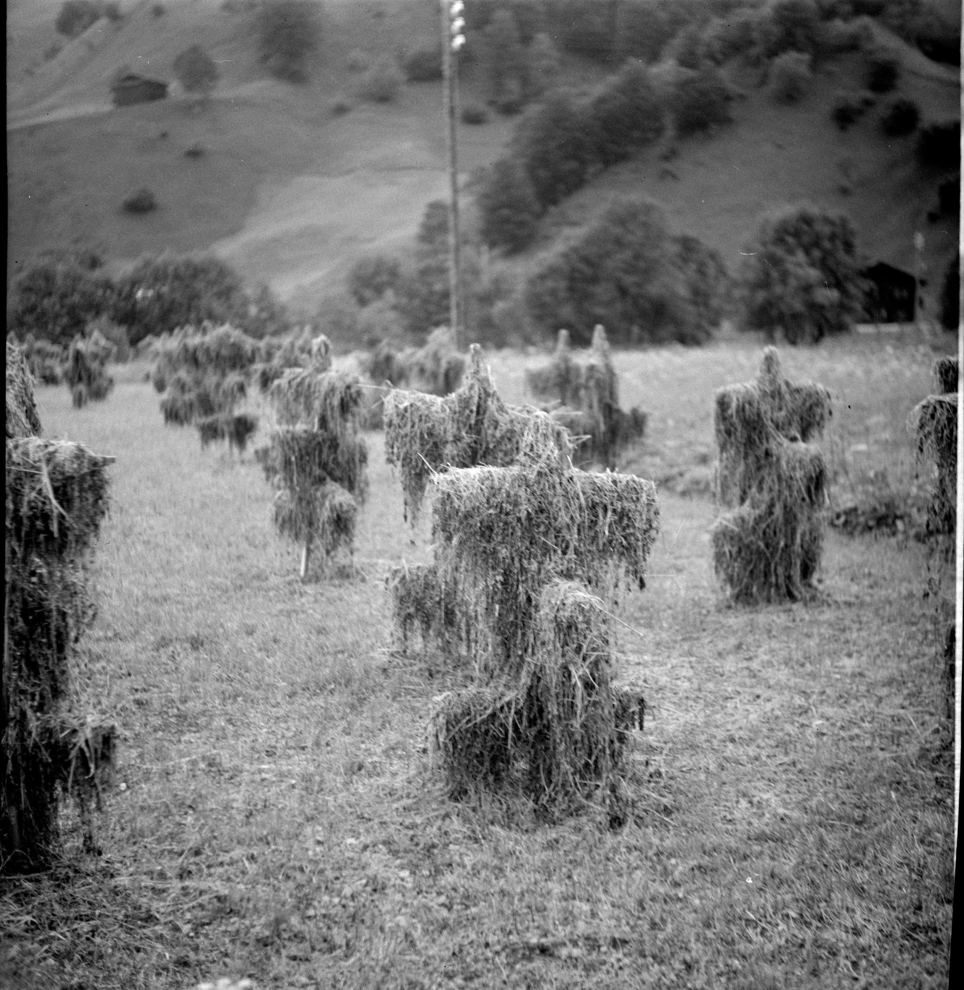 Fragebogen über die schweizerische Volkskunde: VI. Land-, Alp- und Viehwirtschaft; C. Arbeitsbrauch und Feste; Frage 355: Gibt es besondere Vorrichtungen zum Austrocknen des Heus? Wie nennt man sie?