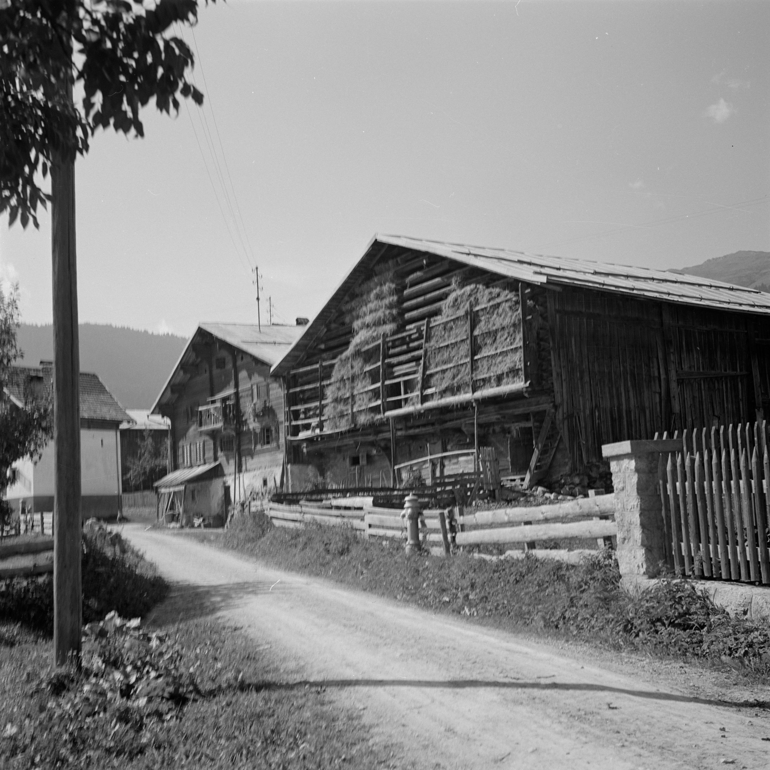 Auf der Positiv-Rückseite befindet sich folgende Notiz: 1947 Fellers (GB); B 1245 E 354; Scheune mit Korntrockungslaube; Photo Wildhaber