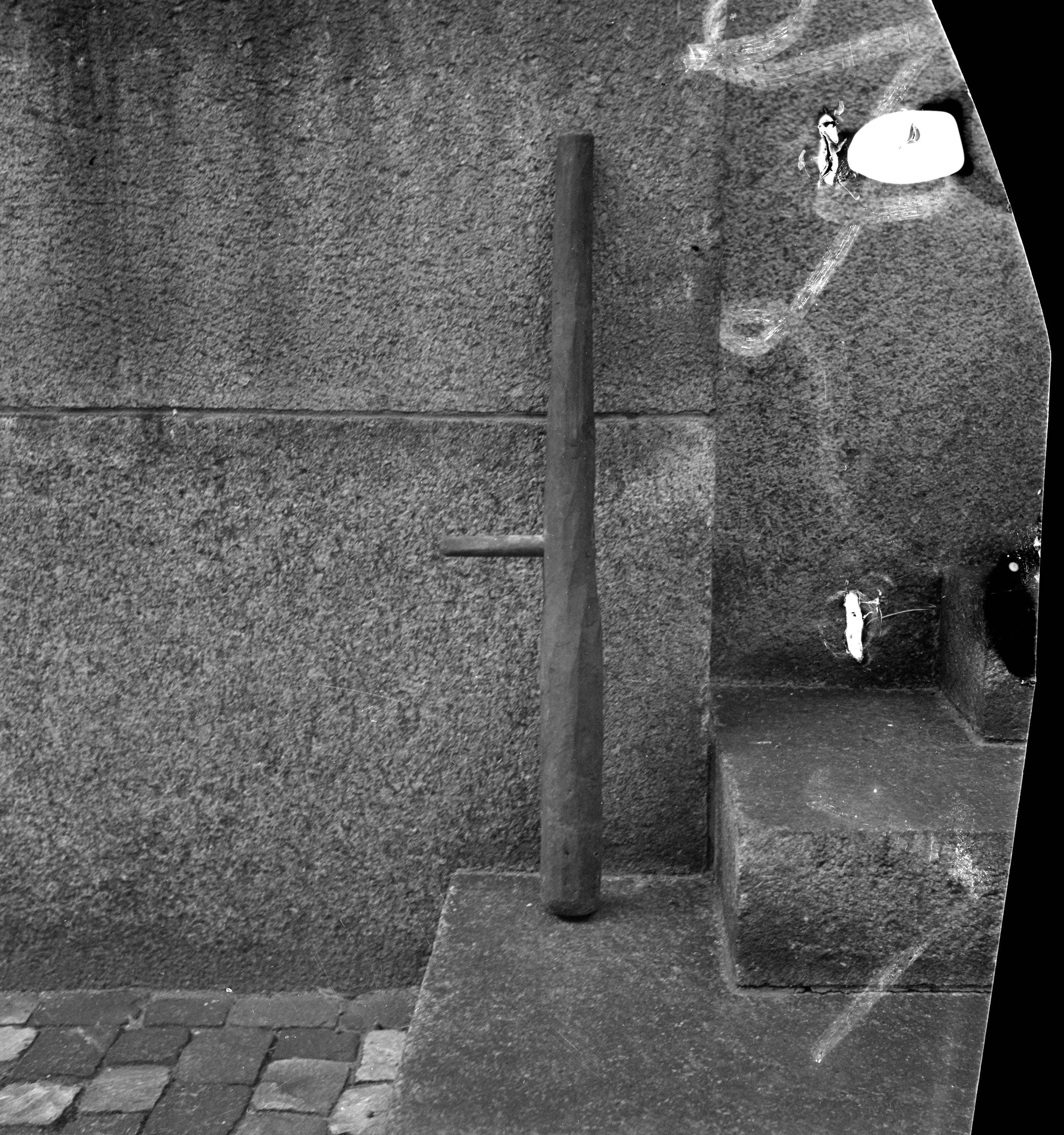 Auf der Karteikarte steht mit Schreibmaschine geschrieben: Geräte, (Haushalt); Kartoffel-Stössel von Klosters Aeuja. (Museum für Volkskunde, Basel, VI 18499)