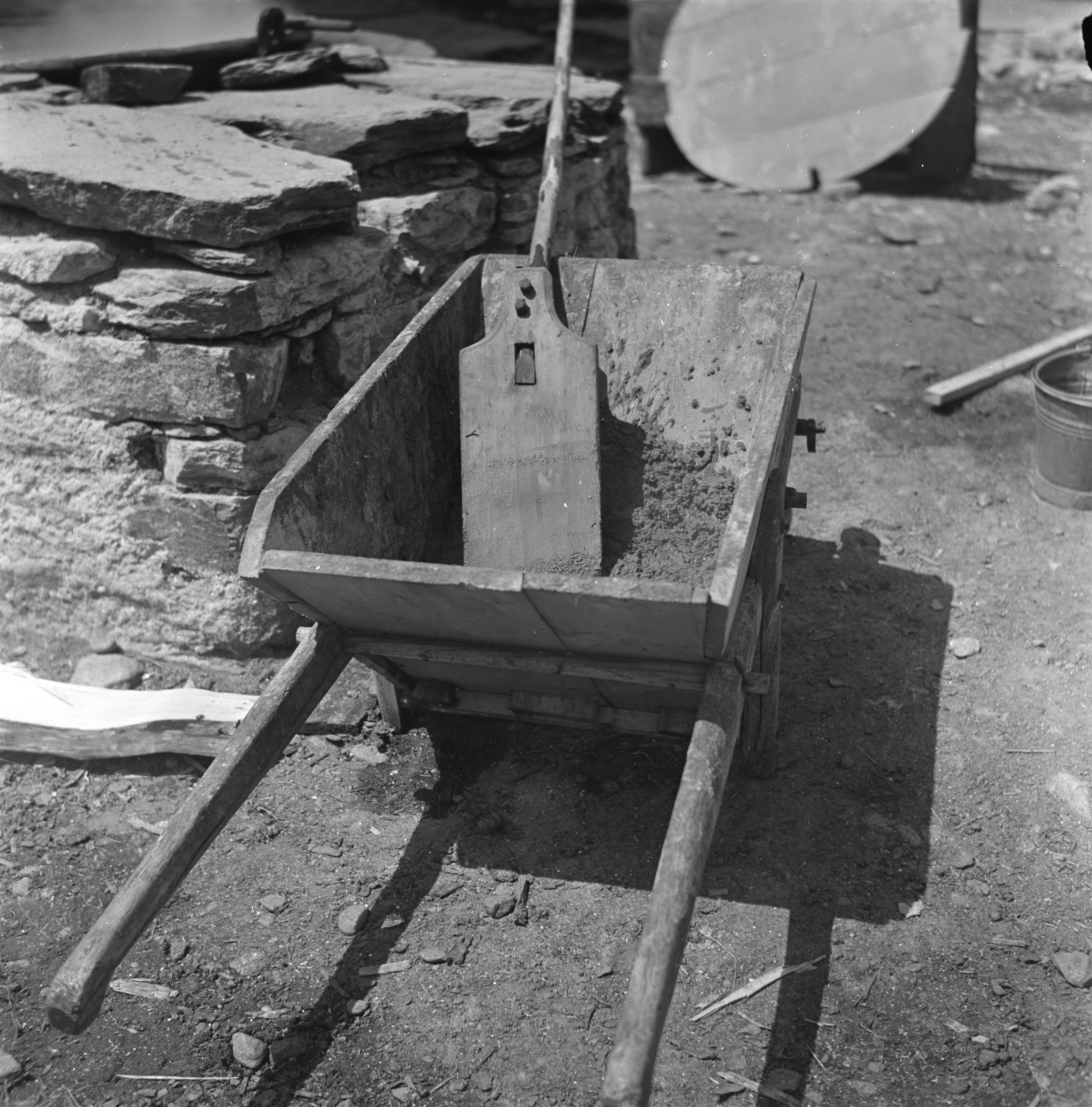 Auf der Karteikarte steht mit Schreibmaschine geschrieben: Wäsche; Mit dieser eigenartigen Schaufel wird der sogenannte Aschensatz aus dem Kessel heraufgeholt.