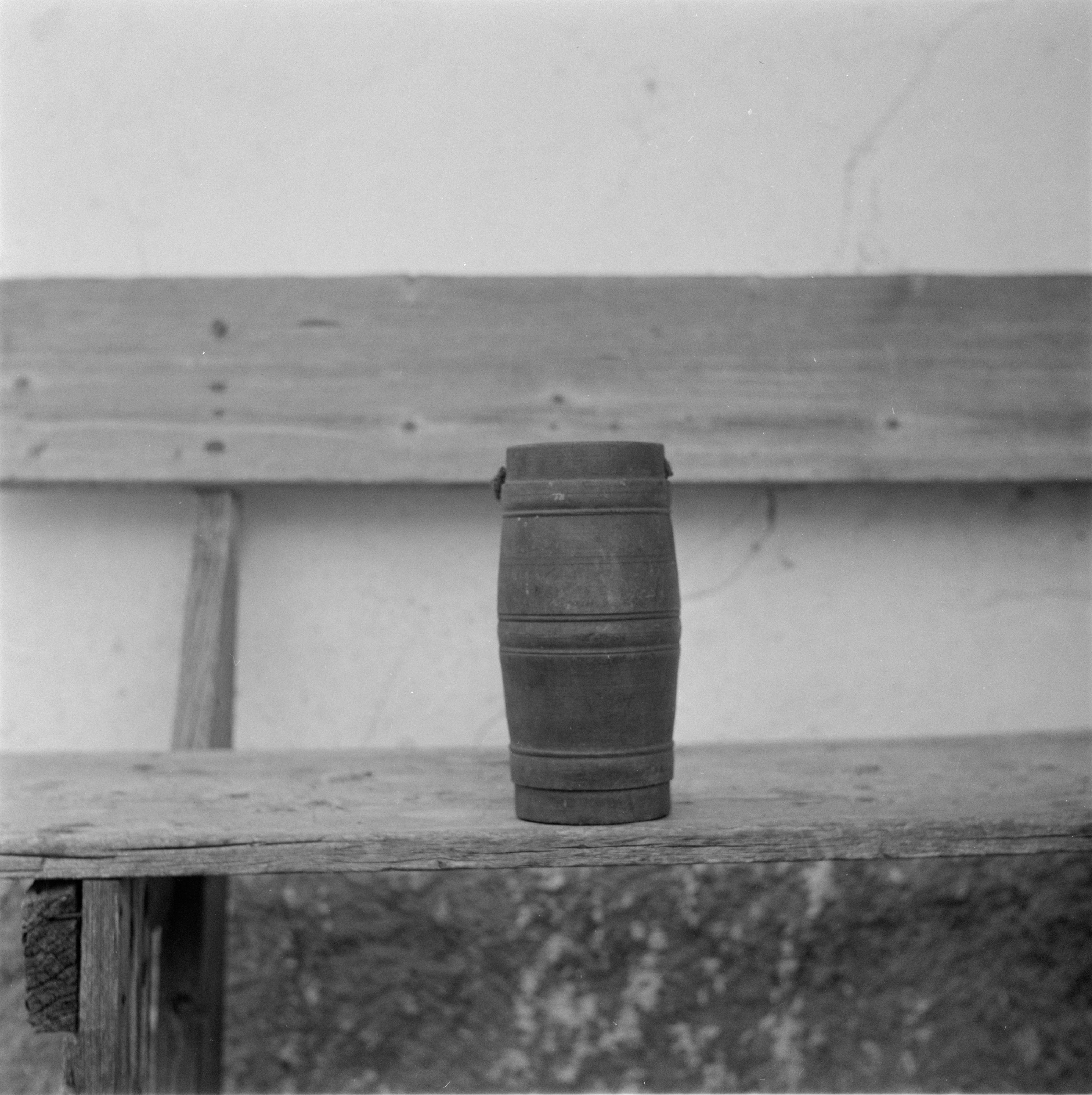 Auf der Karteikarte steht mit Schreibmaschine geschrieben: Traggeräte; Feldflasche aus Holz (Eigentum des Museums für Volkskunde, Basel) VI 18202