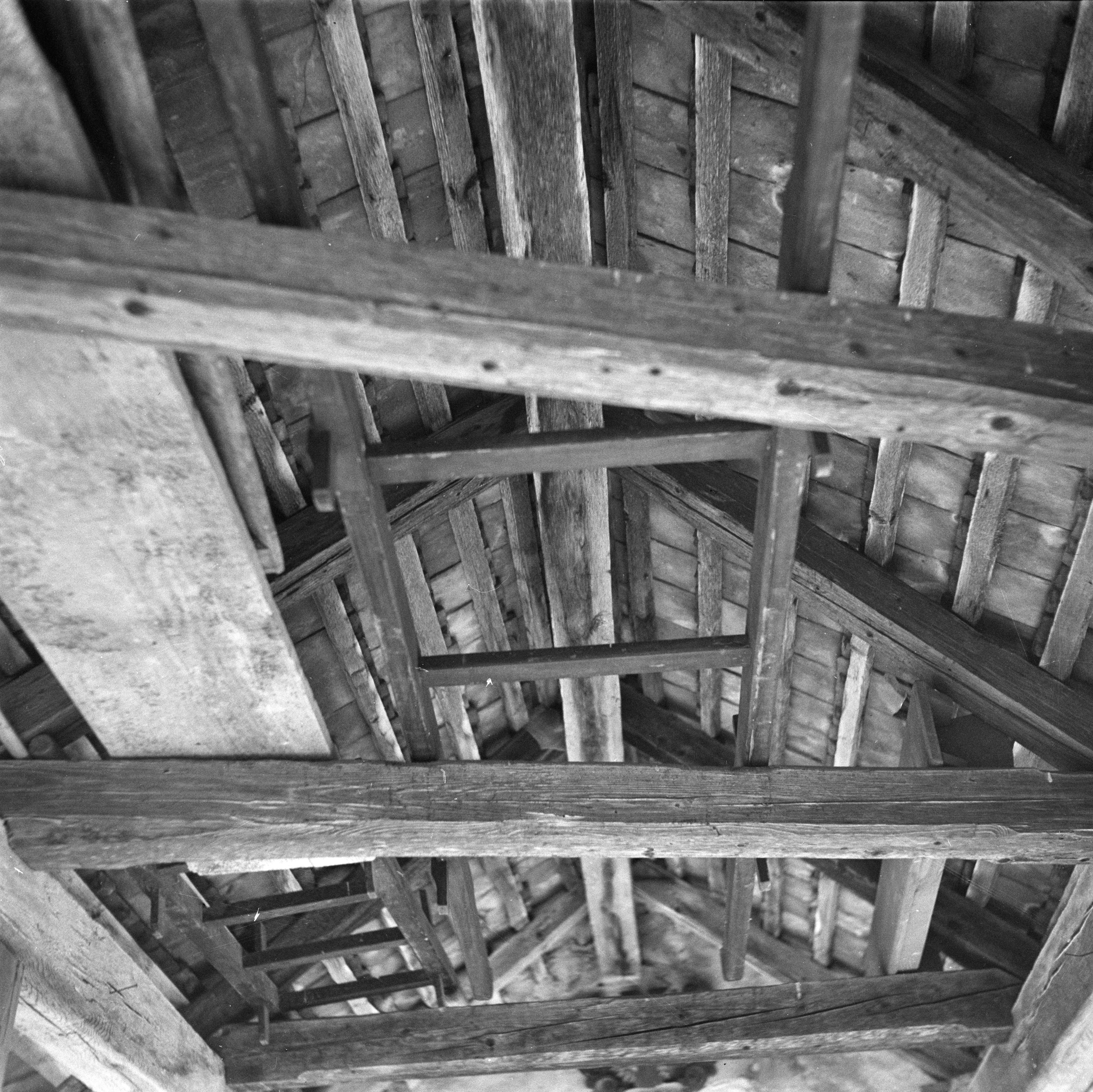 Auf der Karteikarte steht mit Schreibmaschine geschrieben: Kirche; Vorzeichen zur Kapelle (von unten photographiert) mit 2 Sargbahren