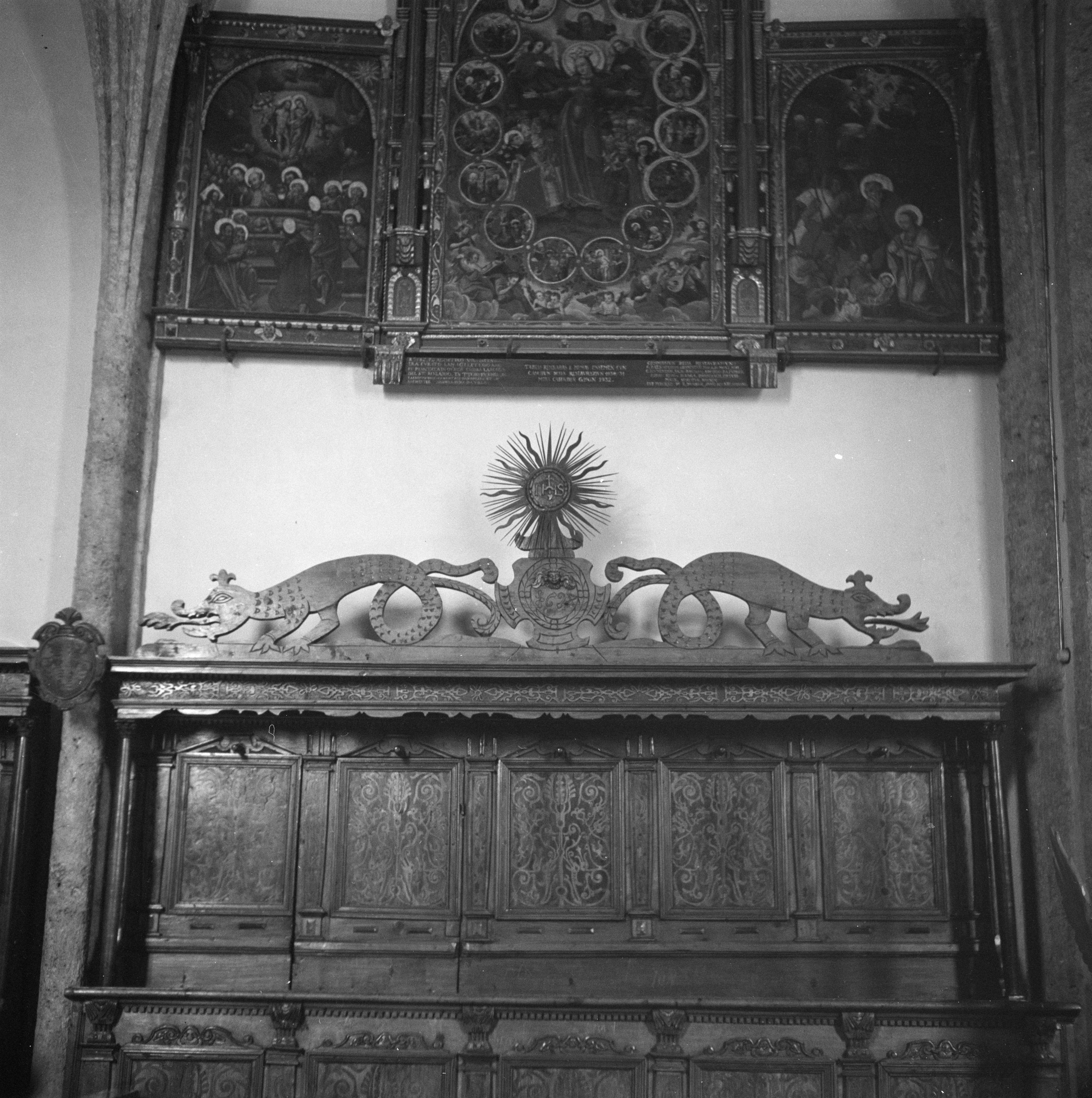 Auf der Karteikarte steht mit Schreibmaschine geschrieben: Kirchen; Chorgestühl
