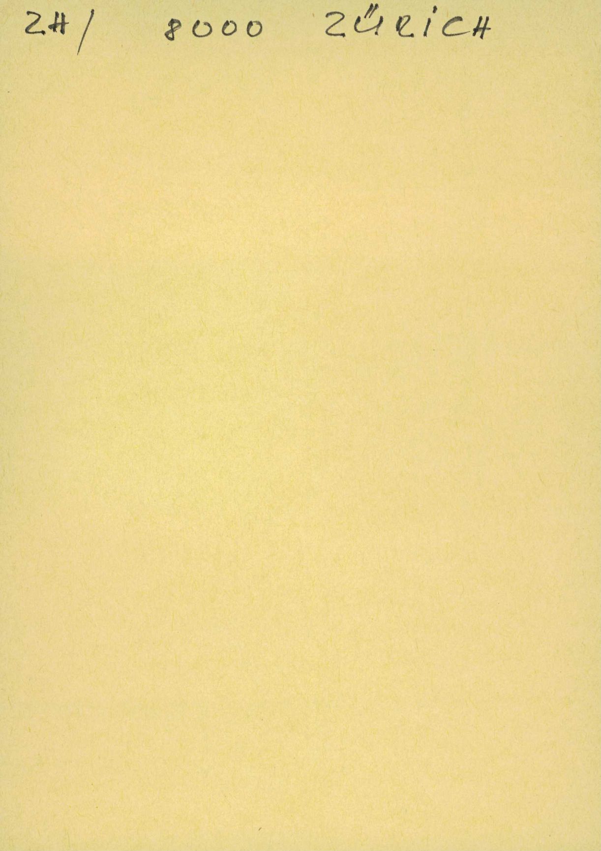 Auf der Vorderseite befindet sich folgende Notiz: ZH/ 8000 ZÜRICH