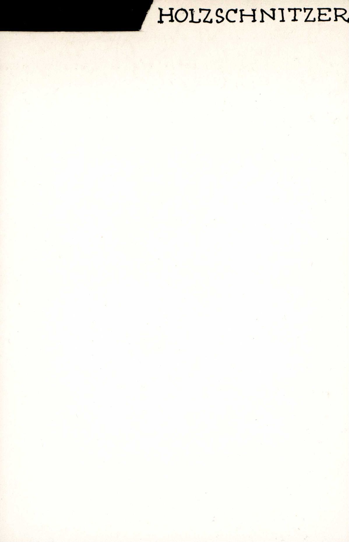 Auf der Vorderseite befindet sich folgende Notiz: HOLZSCHNITZER