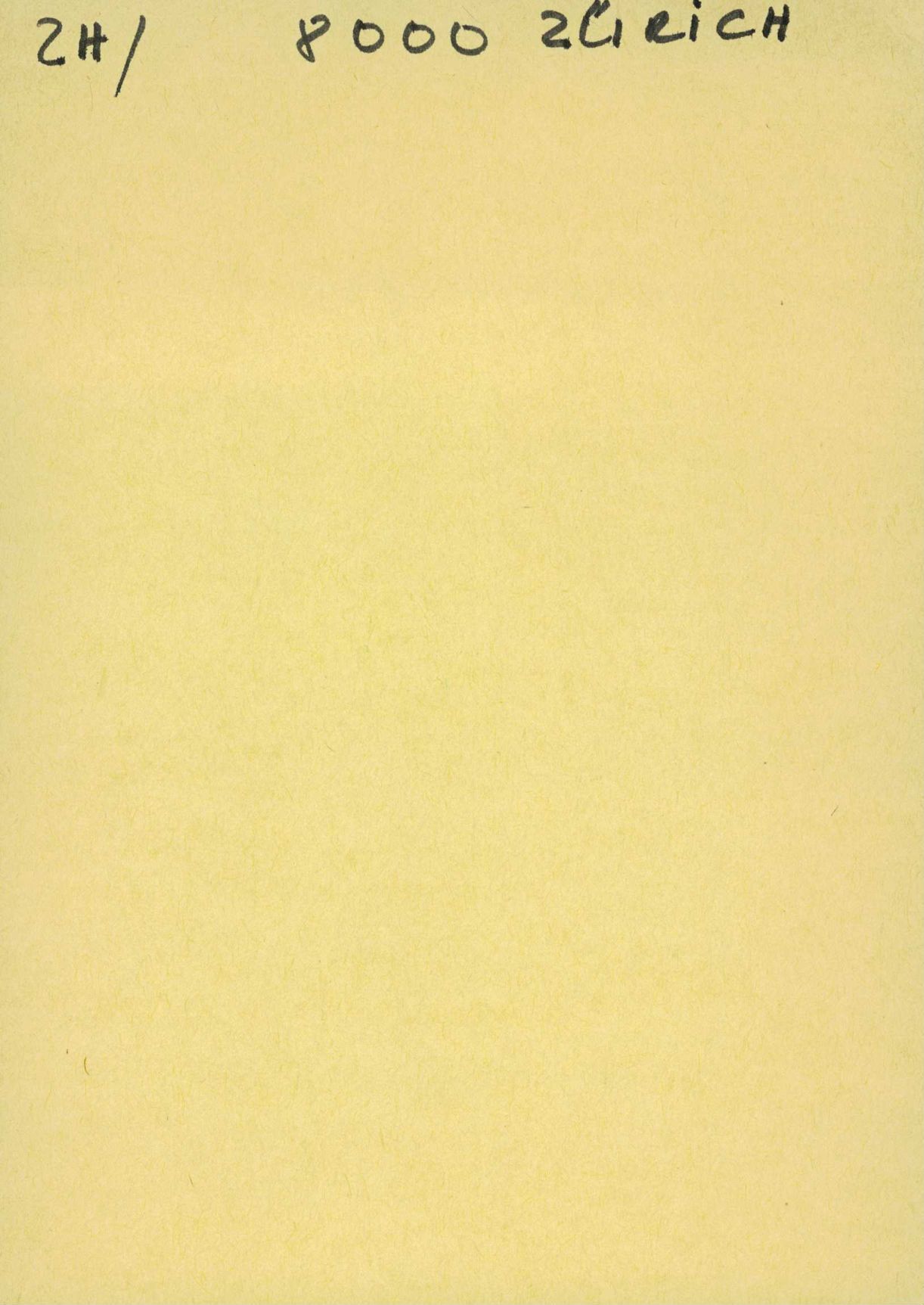 Auf der Vorderseite befindet sich folgende Notiz: ZH / 8000 ZÜRICH