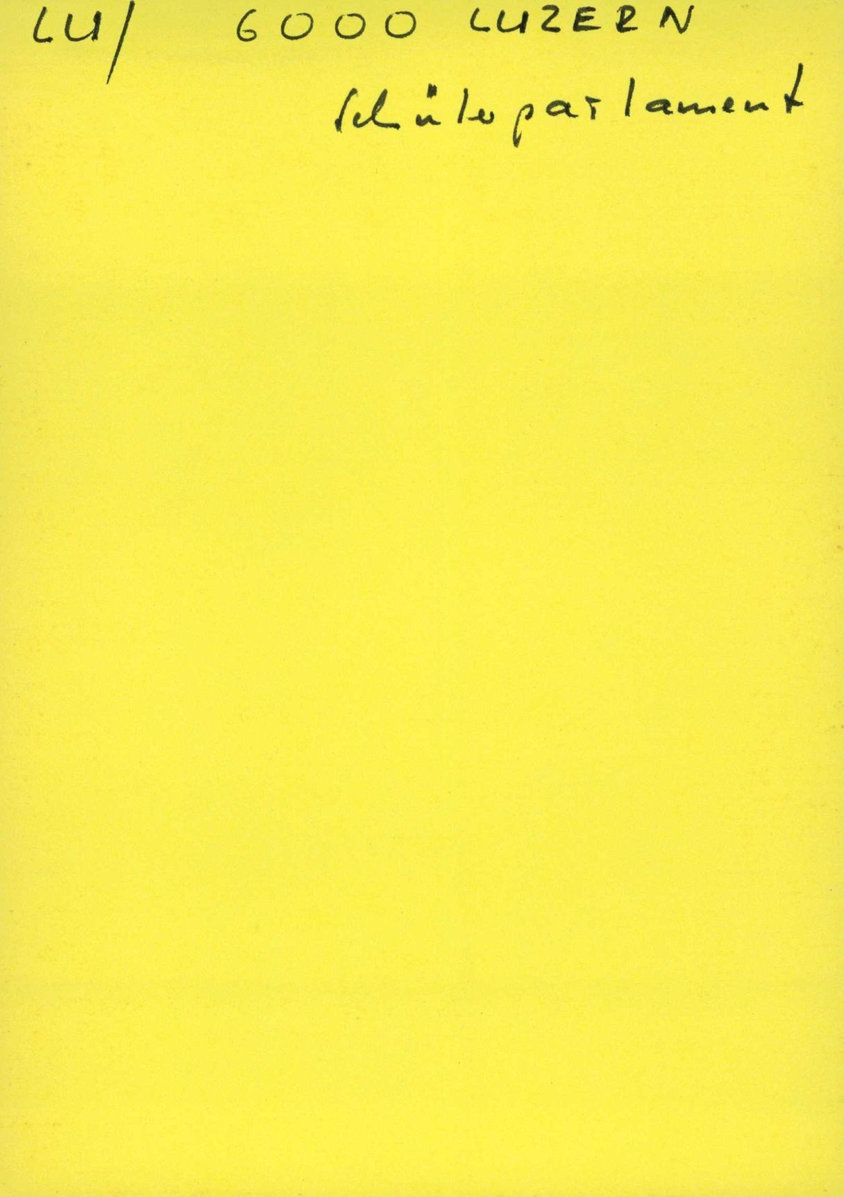 Auf der Vorderseite befindet sich folgende Notiz: LU / 6000 LUZERN Schülerparlament