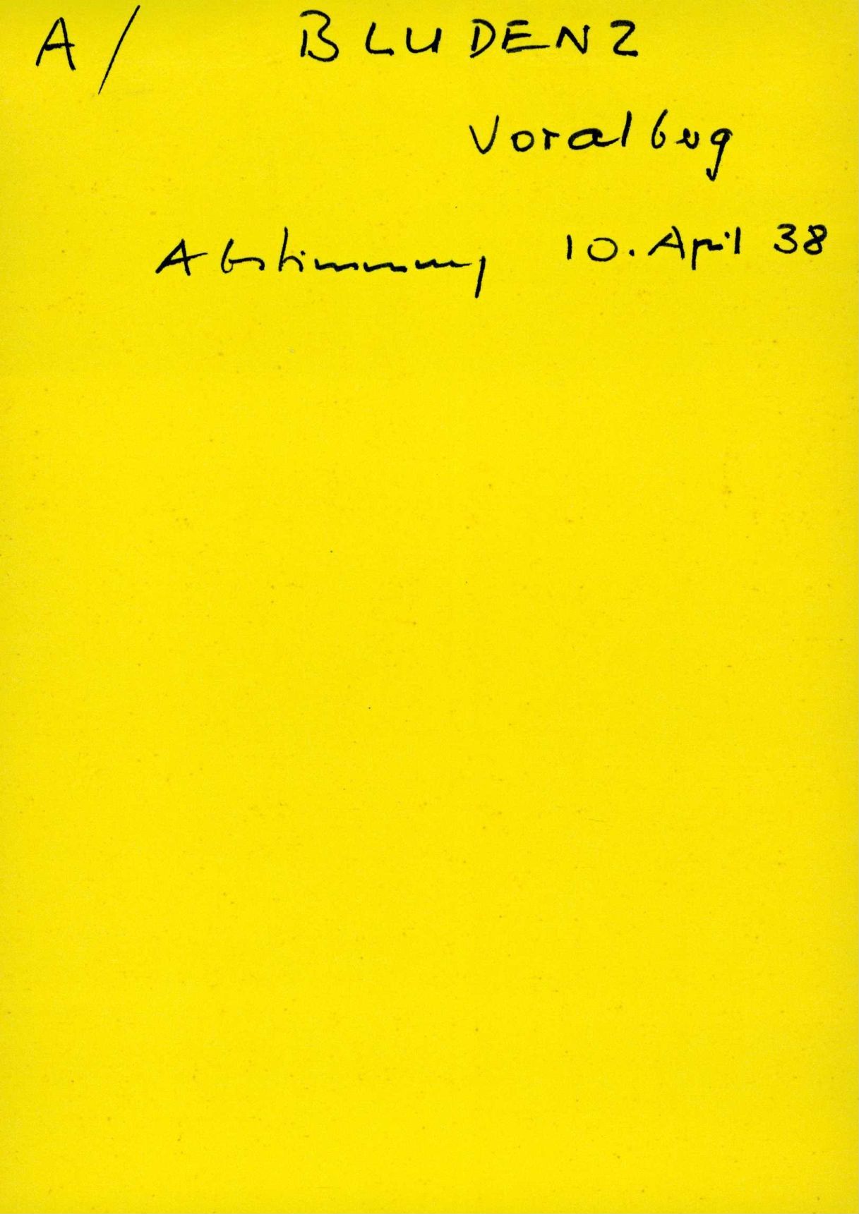 Auf der Vorderseite befindet sich folgende Notiz: A/ BLUDENZ Vorarlberg Abstimmung 10. April 38