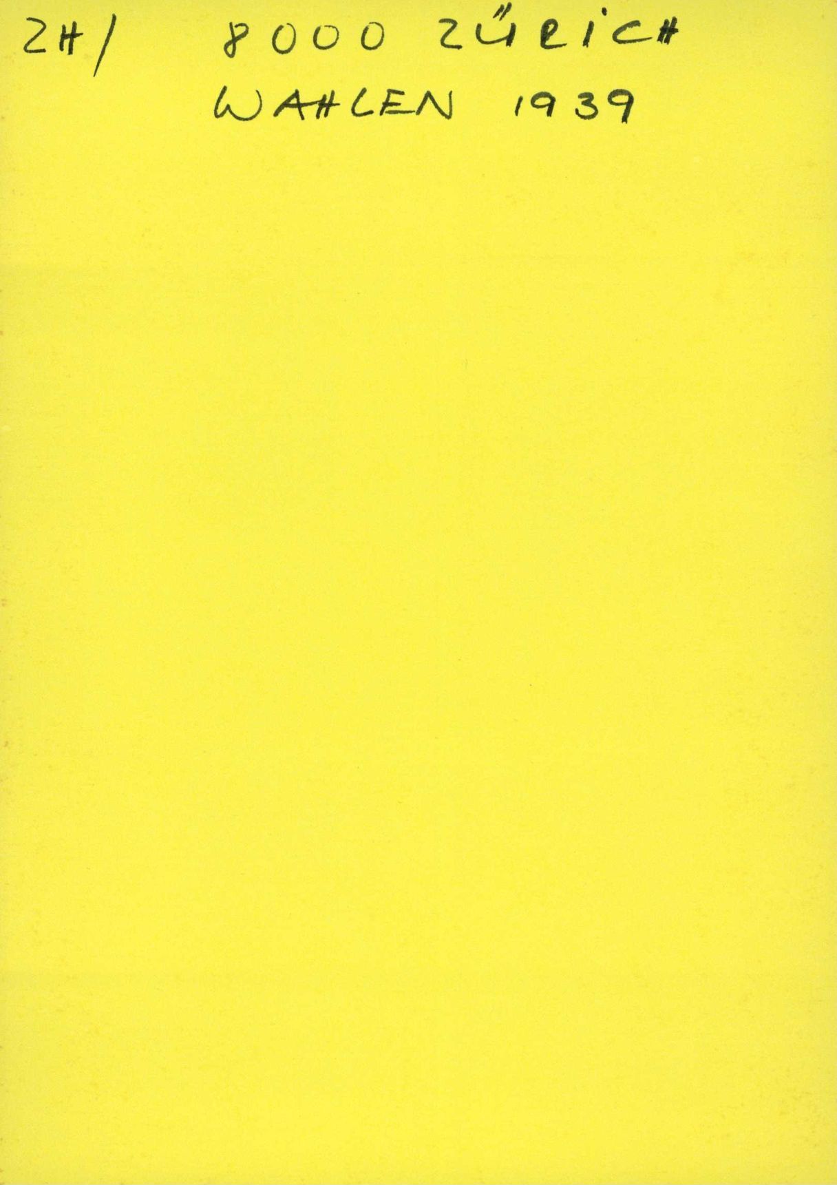 Auf der Vorderseite befindet sich folgende Notiz:ZH/ 8000 ZÜRICH WAHLEN 1939